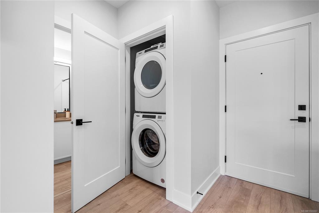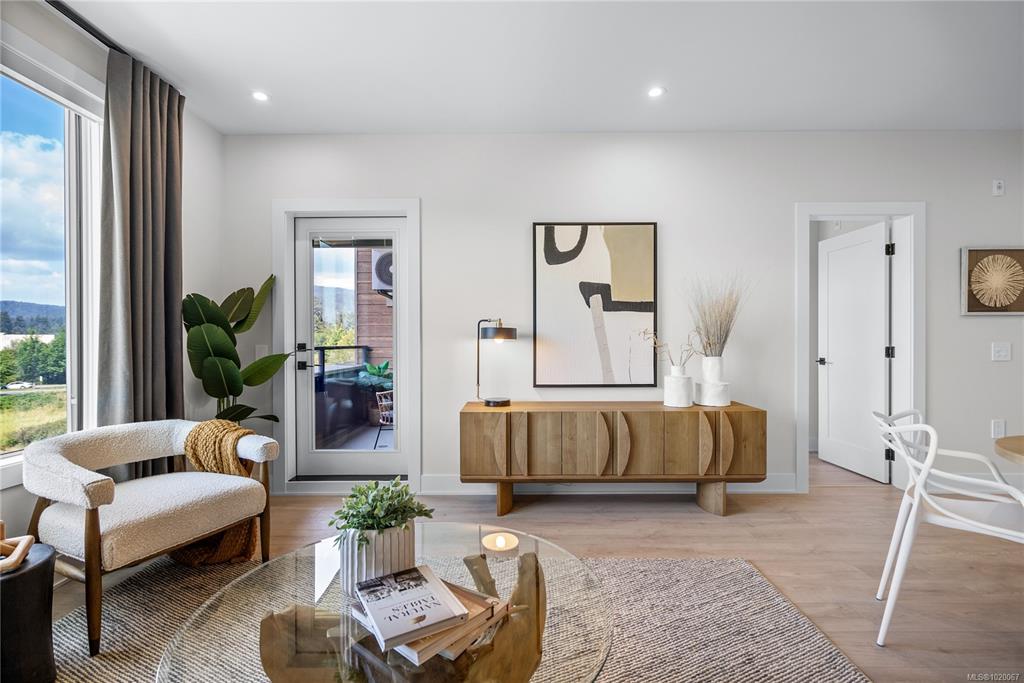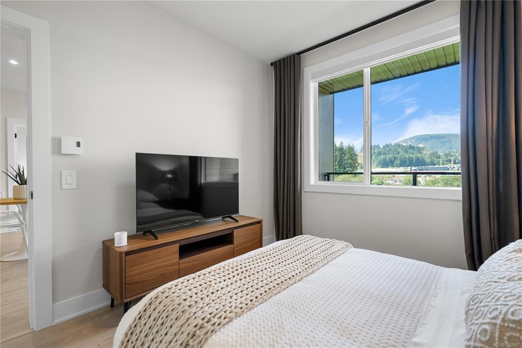 GST INCLUDED for any contract that goes firm on or before Dec 31st, 2025. Top Floor and set perfectly to enjoy the peaceful park setting and water and nature views from your living room, kitchen, and deck. This popular floor plan is 2 beds and 2 baths and ready for immediate possession. Enjoy new construction with air conditioning, one (EV ready) parking space, and the convenience of a storage locker on your floor. Poised on the shores of Langford Lake, all homes come equipped with amenities for modern livi...