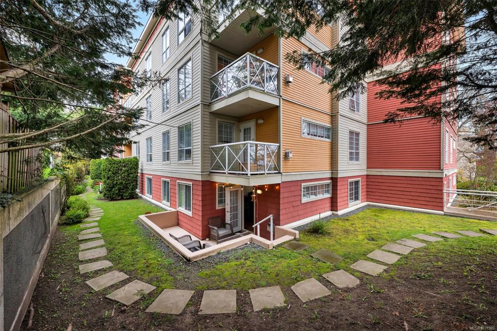 Call Sterling Court your home! This south facing ground level private unit is suitable for any buyer. 2 Large Bedrooms each on separate sides of the unit both with their own bathroom access. Stainless Steel appliance, Natural Gas Fireplace. Situated on the other side of the building so it is very quiet and the unit has outdoor access to a common area green space which would be great for kids to play or a place for a leashed pet to hangout. Strata allows up to 3 Dogs or Cats which is very uncommon. Strata w...