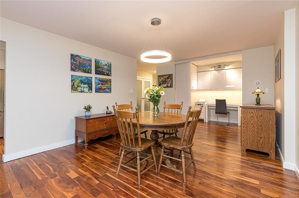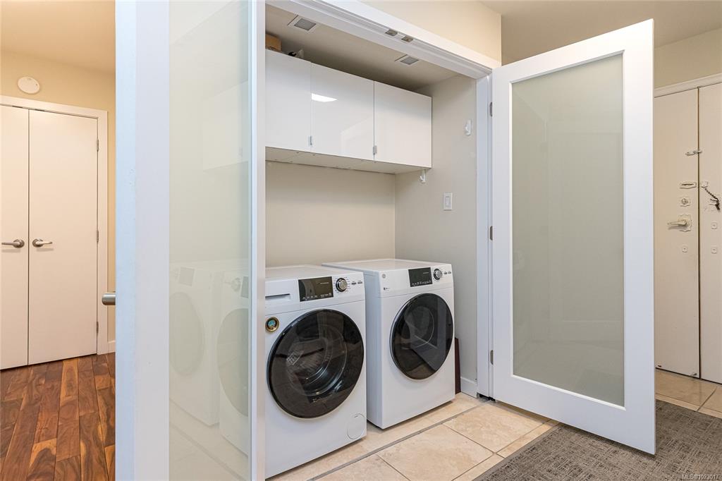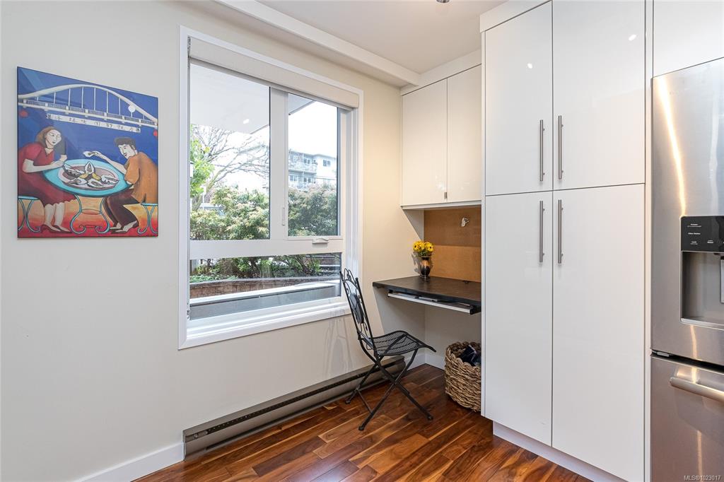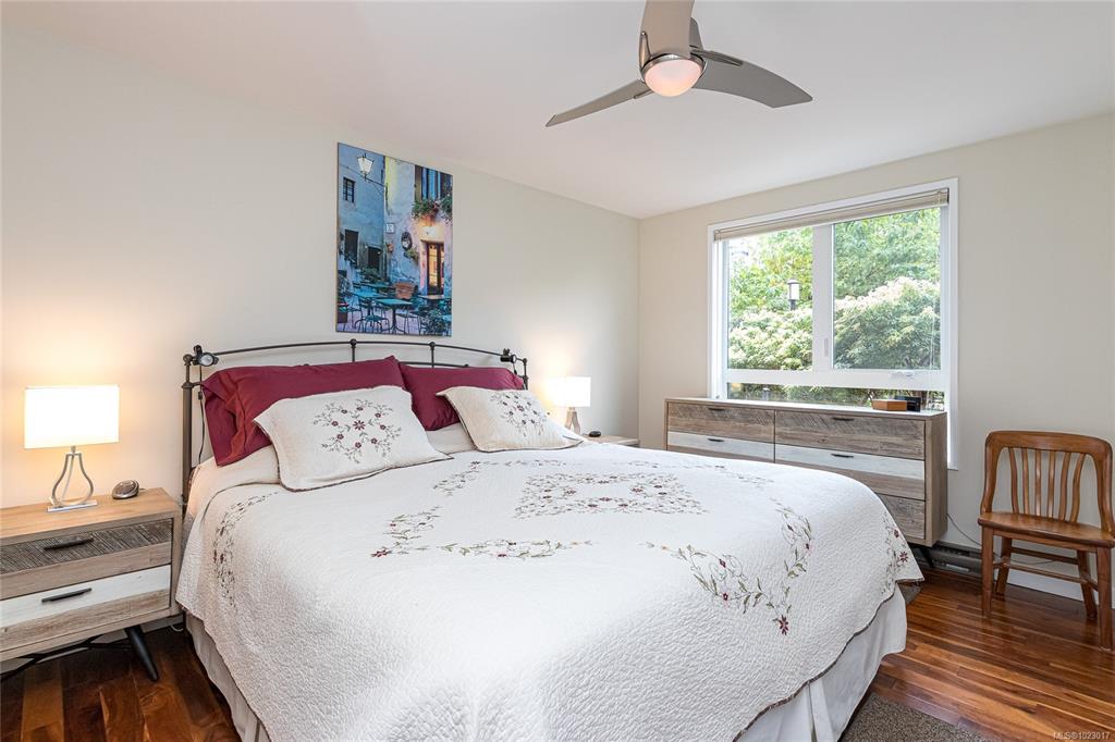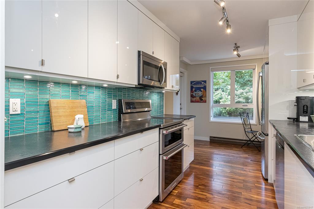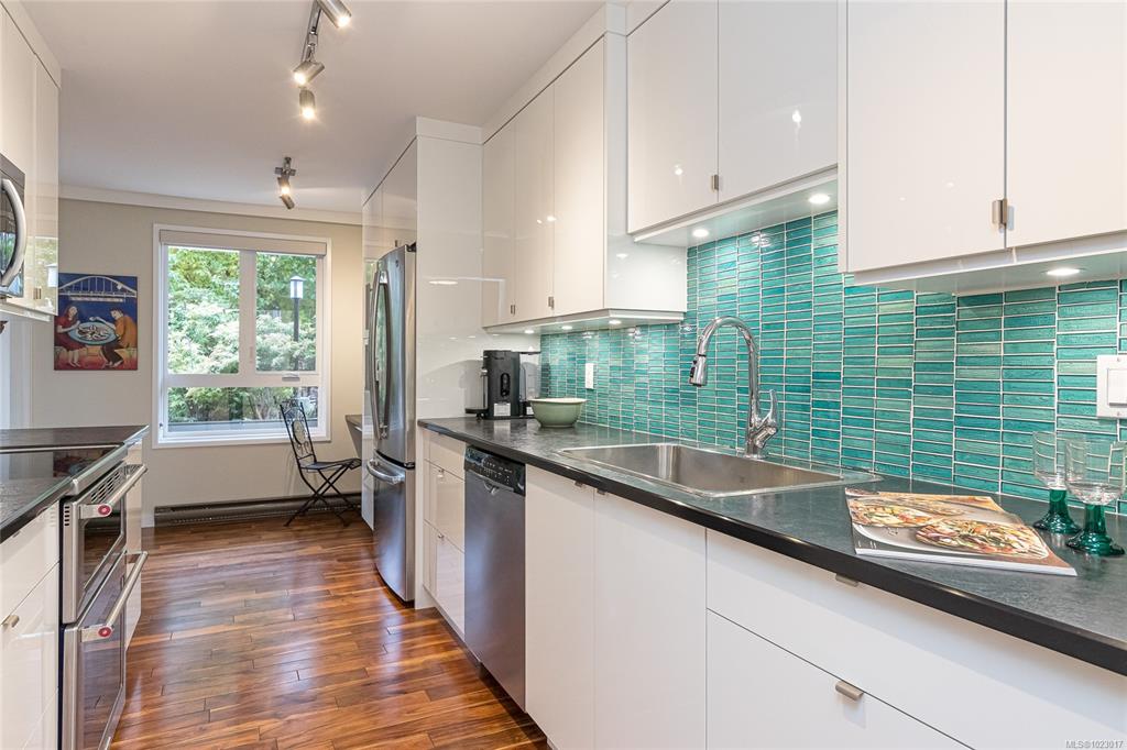 Beautiful sunny two bedroom condo steps from Oak Bay Marina and Oak Bay Village. Over 1300 sq ft of comfortable living space plus over 700 sq ft of private outdoor patio living space with southwest exposure. Spacious open floor plan with living room, dining room and office area separated by sliding panels. Modern kitchen complete with plenty of storage and desk. Primary bedroom boasts two closets plus wall to wall built in storage, second bedroom includes a large walk in closet. Enjoy sunny afternoons relax...