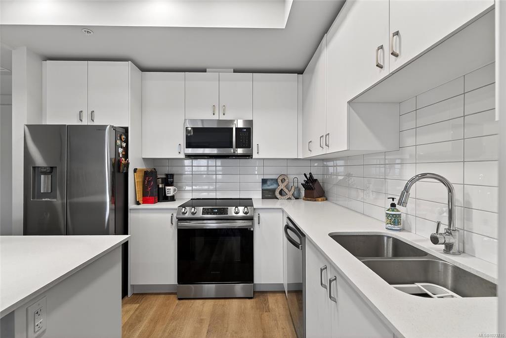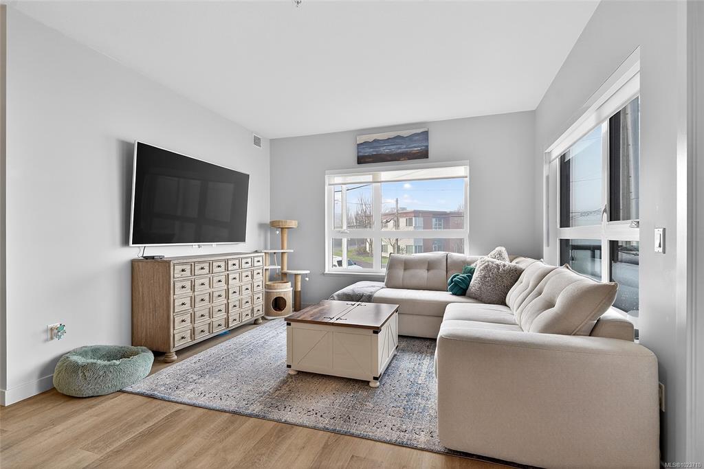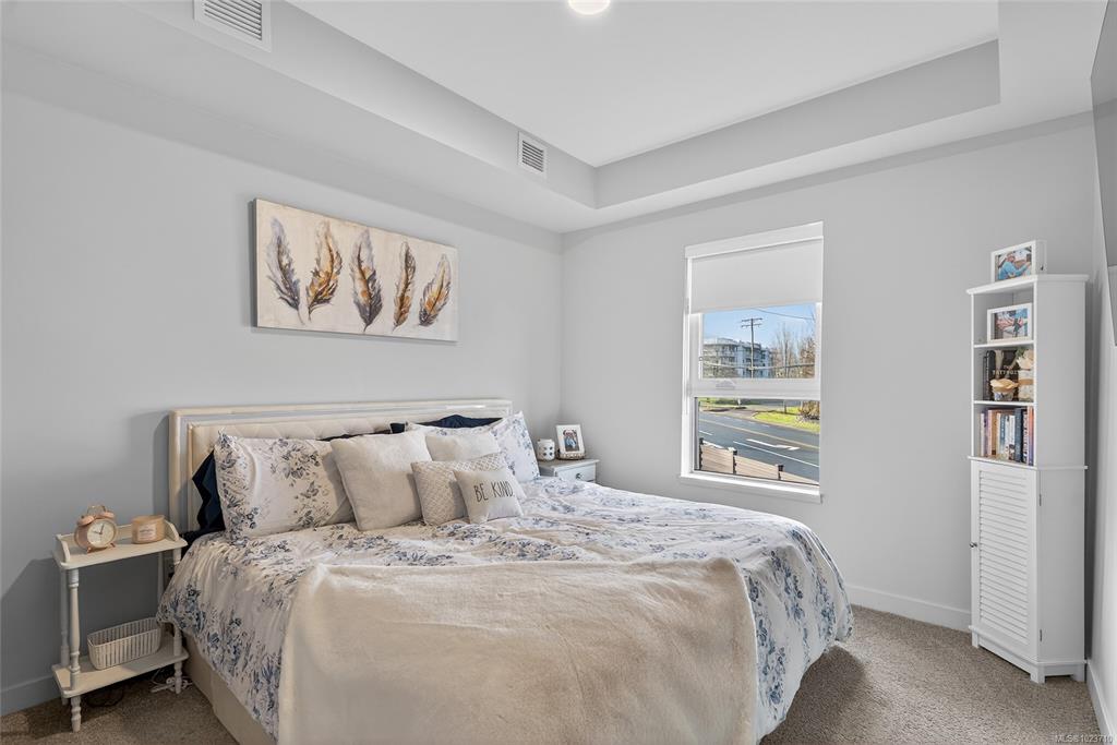 Welcome to Mosaic at Jensen, Parksville’s modern green built condo community in the heart of downtown. This spacious 2 bedroom, 2 bathroom home features the desirable Cabernet floor plan with an open layout and excellent bedroom separation. Northwest facing, the unit offers ocean views toward the Salish Sea and Lasqueti Island, plus a generous balcony ideal for afternoon light and evening sunsets. Inside are 9’ ceilings, quartz countertops, contemporary cabinetry, triple pane windows, and an energy efficien...