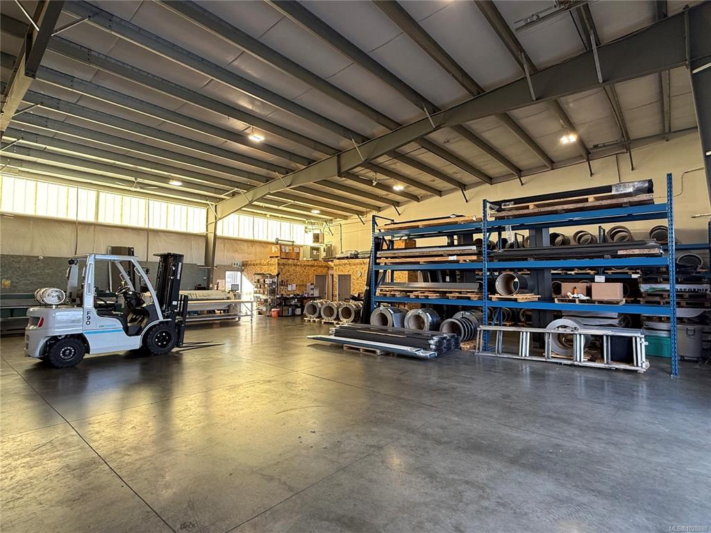 Steel building, gas heat and insulated. Light industrial space for a variety of warehousing, manufacturing, assembly, sales and production purposes. Electrical 3 phase, 400 amps, 600 volts. Reinforced concrete flooring. With 3 - 15' high by 20' wide overhead doors and a 23 foot ceiling height. Plenty of room to enter / exit into bays and any vehicle/trailer and yard space requirements. Easy access off Church Road, Alberni Hwy, and Hwy 19 for ease for delivering/receiving.Great open space with high ceilings ...
