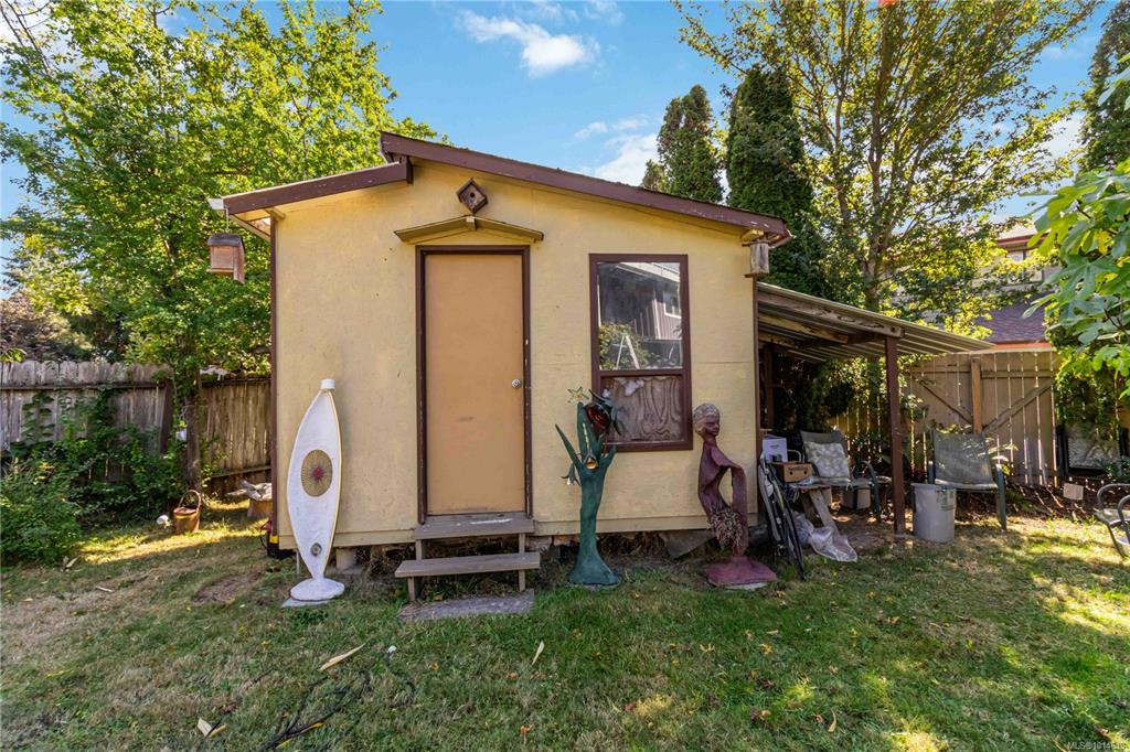 Welcome to 1415 Lang Street - a starter home to add your personal touch or development opportunity to take advantage of the SSMUH initiative. The home offers 2 bedrooms and 1 bathroom, a generous living room with vaulted ceilings, eat in kitchen and separate laundry/storage room and is ready for some TLC. Large crawlspace offers lots of storage. The lot has a gentle slope and a sunny west facing rear yard with a large garden shed/workshop. Centrally located on a quiet street just a short walk to Hillside M...