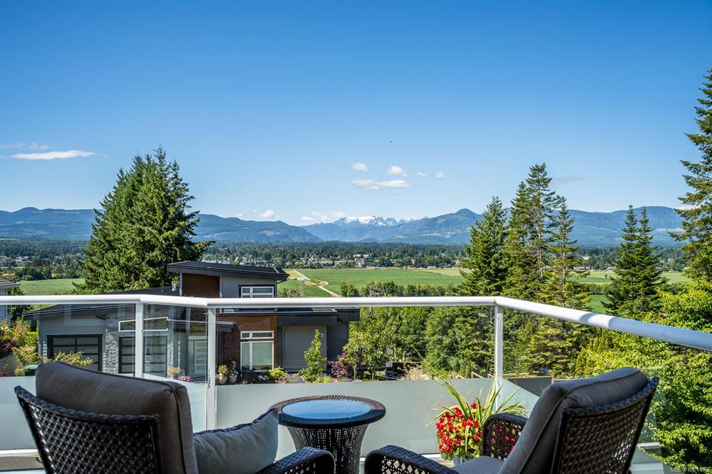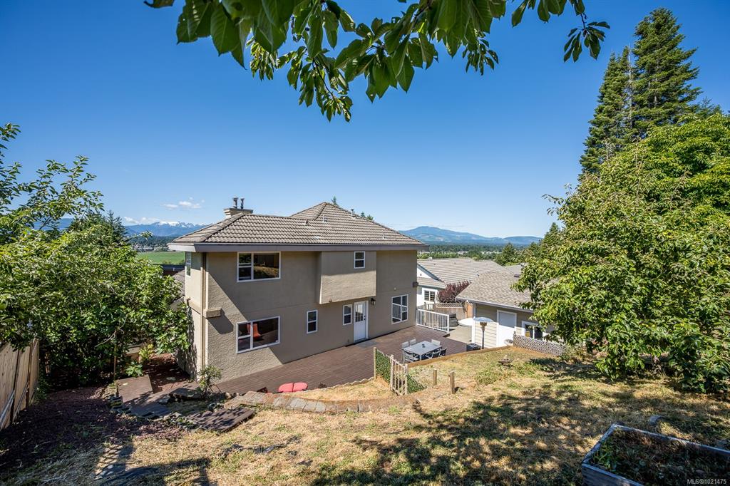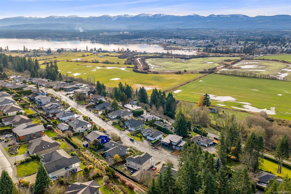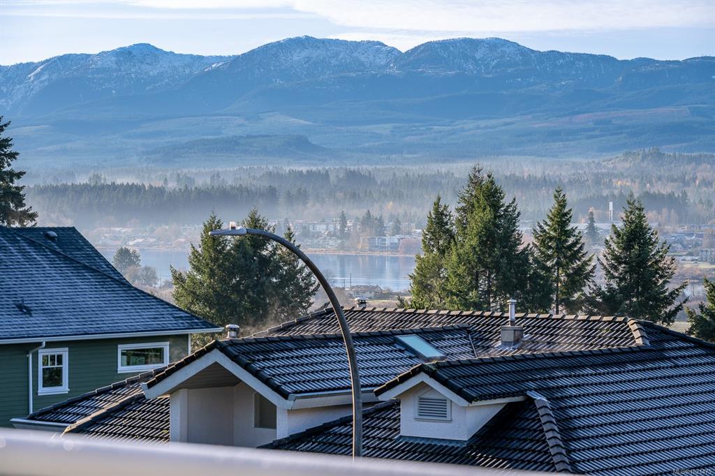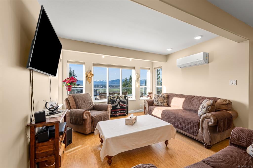 $100,000+ below assessed value! 3,766 sq. ft., three-level multi-generational living with suite potential and views of the Comox Glacier, Mt. Washington, coastal mountains, lush farmland, and city lights! Designed to capture the scenery, the home features extensive windows that fill the interior with natural light. The main living room boasts 12-ft cathedral ceilings and a gas fireplace, currently styled as an elegant dining area. The updated kitchen includes a large island, stainless appliances with gas st...