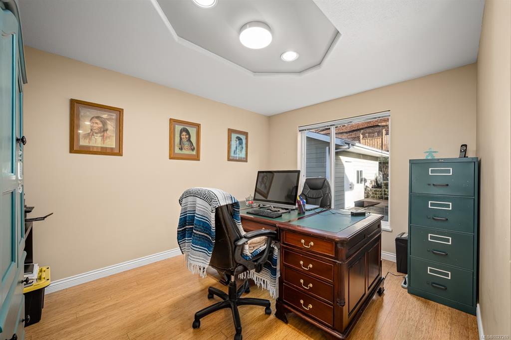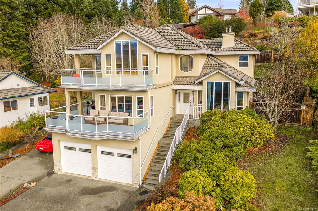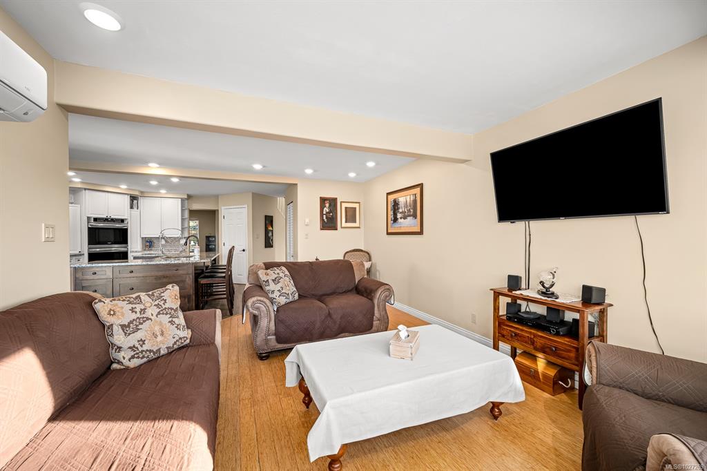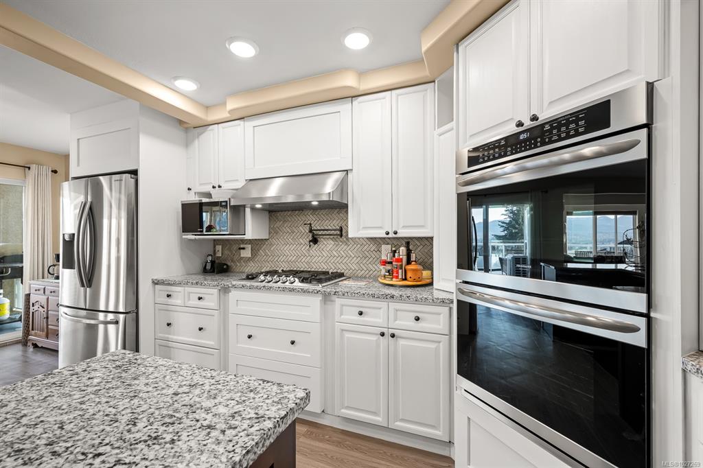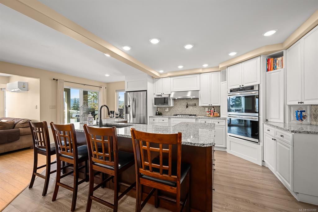 $100,000+ below assessed value! 3,766 sq ft three level multi generational living with suite potential and views of the Comox Glacier, Mount Washington, Coastal mountains, lush farmland and city lights! Designed to capture the scenery, the home features extensive windows that fill the interior with natural light. The main living rooms boasts 12ft cathedral ceilings and a gas fireplace, currently styled as an elegant dining area. The updated kitchen includes a large island, stainless appliances with gas sto...