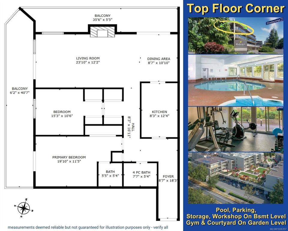 TOP FLOOR | 1,192 SQFT INTERIOR | 415 SQFT PRIVATE DECKS Rare opportunity to secure one of the largest floor plans in the building. This south-west corner residence offers a wonderful area rarely found in the Victoria Core. Perched among the treetops & features a wood-burning fireplace, this home provides ultimate privacy + a house-like feel. The 1,192 sqft interior is nearly 35% larger than standard units in the building, complemented by an impressive 415 sqft of private decks—perfect for outdoor living & ...