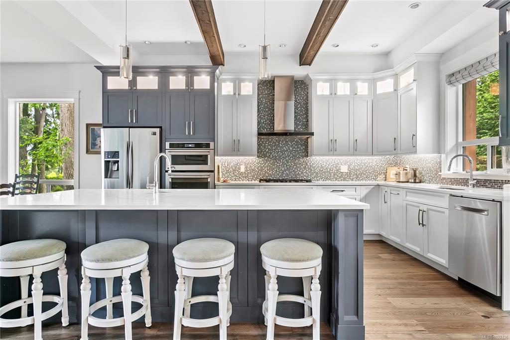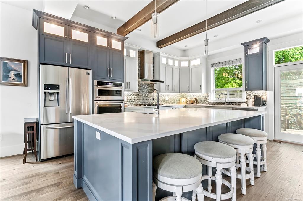 Step into a beautifully crafted custom home, offering over 3,000 sq. ft. of refined living space and designed for both comfort and versatility. This 5-bedroom, 4-bathroom residence features high-end finishes, expansive windows, and a thoughtful layout that blends function with elegance. The main floor includes a gourmet kitchen with a large island and breakfast nook, a spacious dining area and a bright living room with a gas fireplace that flows seamlessly to the private patio and garden. A main-level bedro...