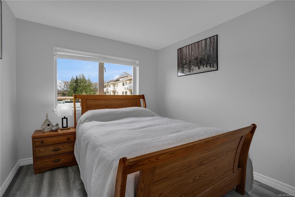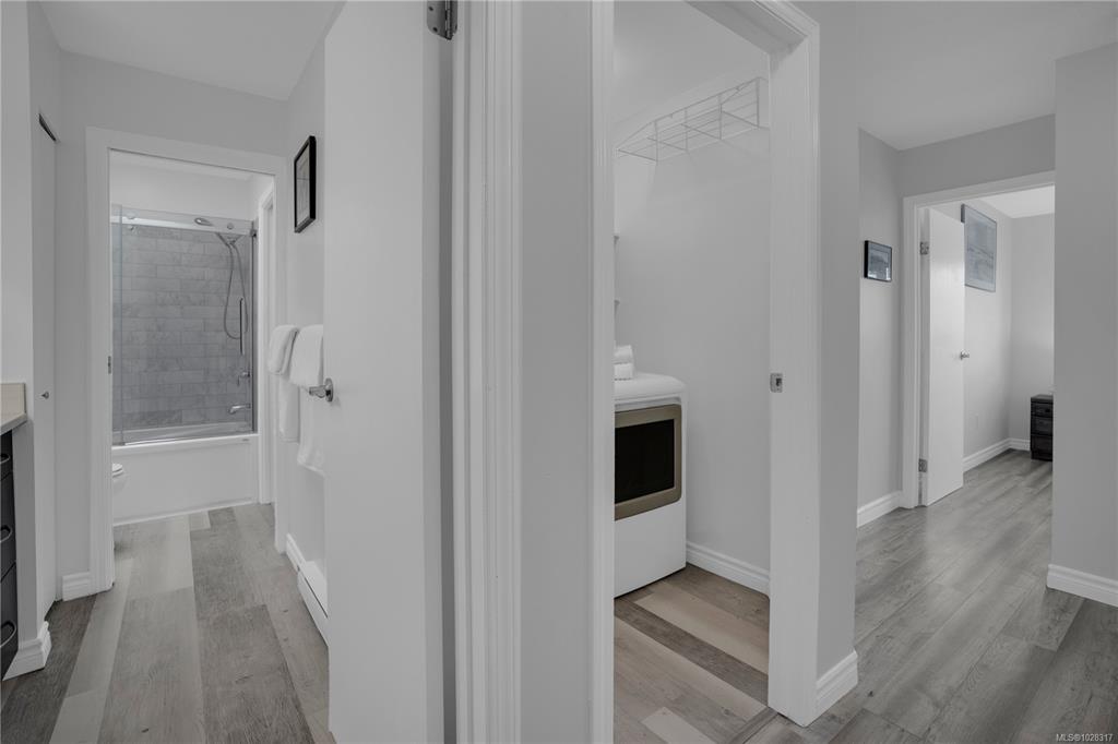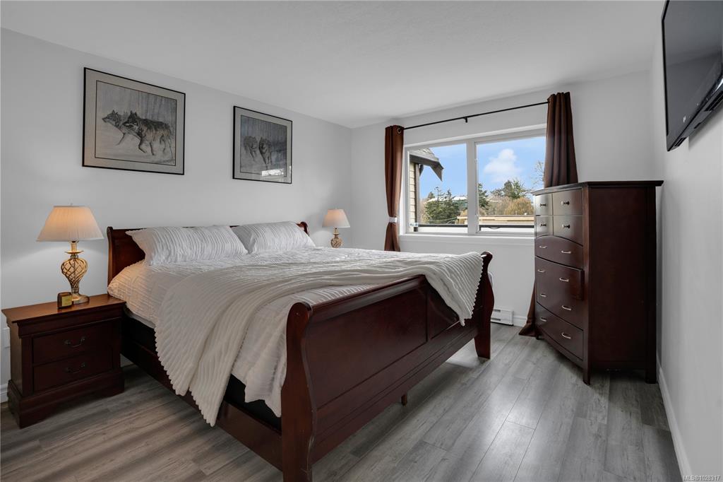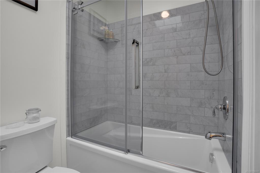 NEW LISTING — Top floor east facing renovated 2 bed 1 bath w/laundry. Open floor plan, updated flooring no carpet. Updated kitchen w/stone counters, SS appls & custom cabinets. Large living rm w/wood burning FP & office nook, skylight. Deck for entertaining & BBQs, no immediate front neighbours. Spacious primary w/large closet & ensuite w/soaker tub, glass doors & updated fixtures. Large main bath. Walk-in laundry rm w/full size appliances & shelving. Storage closet. Open dining area. Secure entrance, u/g p...