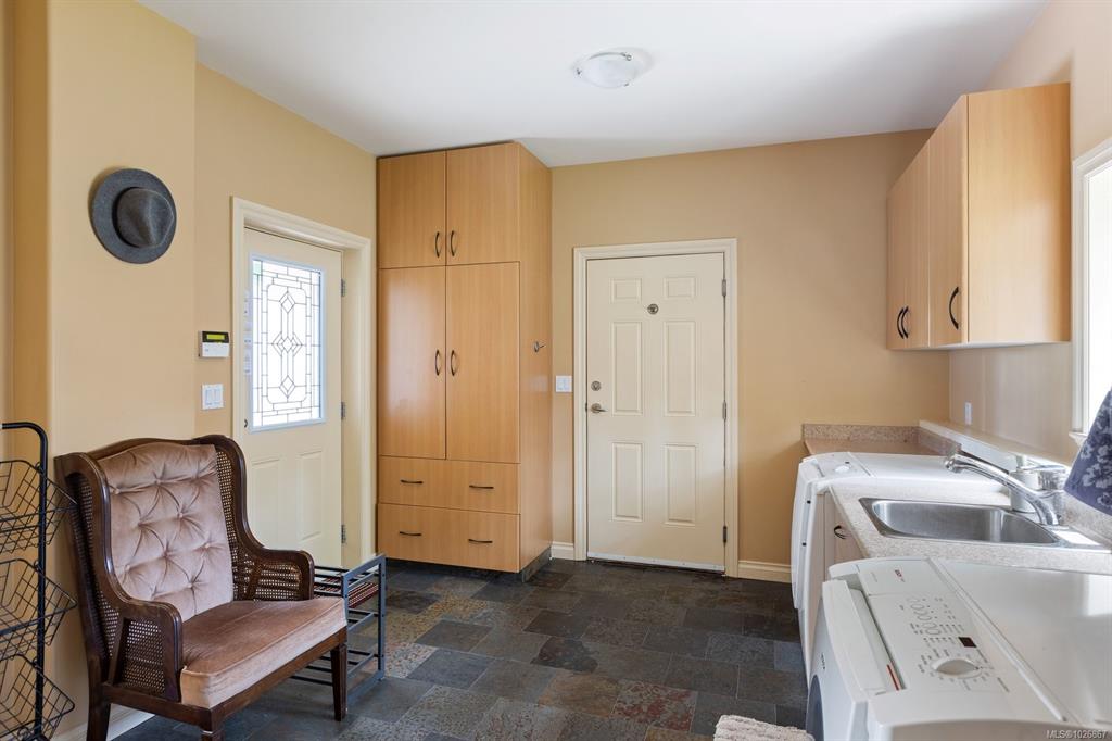 Set on 5.39 acres of peaceful, private land, this custom-built home blends natural beauty, comfort & craftsmanship. Surrounded by mature trees and a picturesque pond, the property offers private access to Gowlland Todd Park’s extensive trail system with miles of scenic hiking and biking right from your doorstep. Privately positioned at the end of a fully paved driveway, it provides ample parking for vehicles/boat/RV. Inside, a warm, cohesive colour palette complements the thoughtful layout and quality finis...