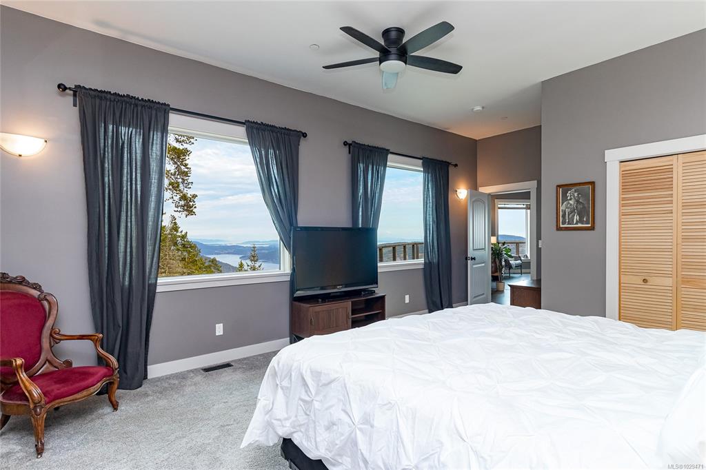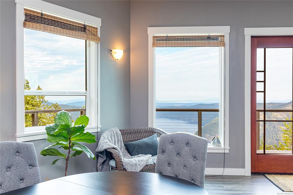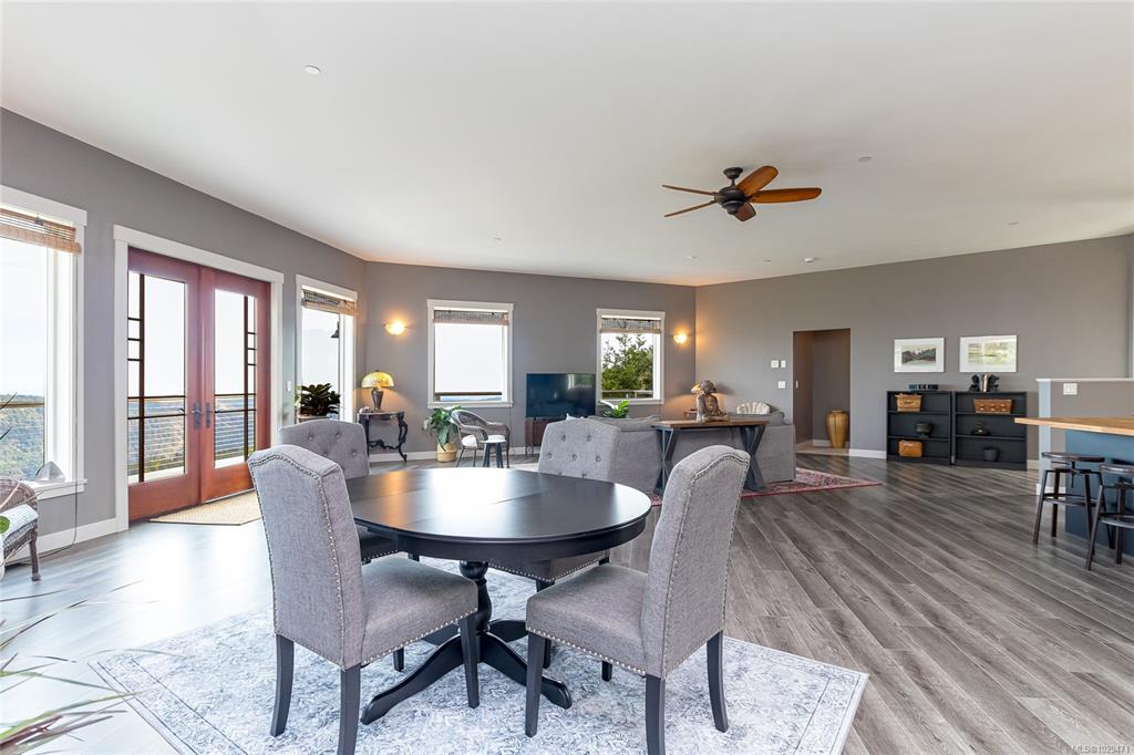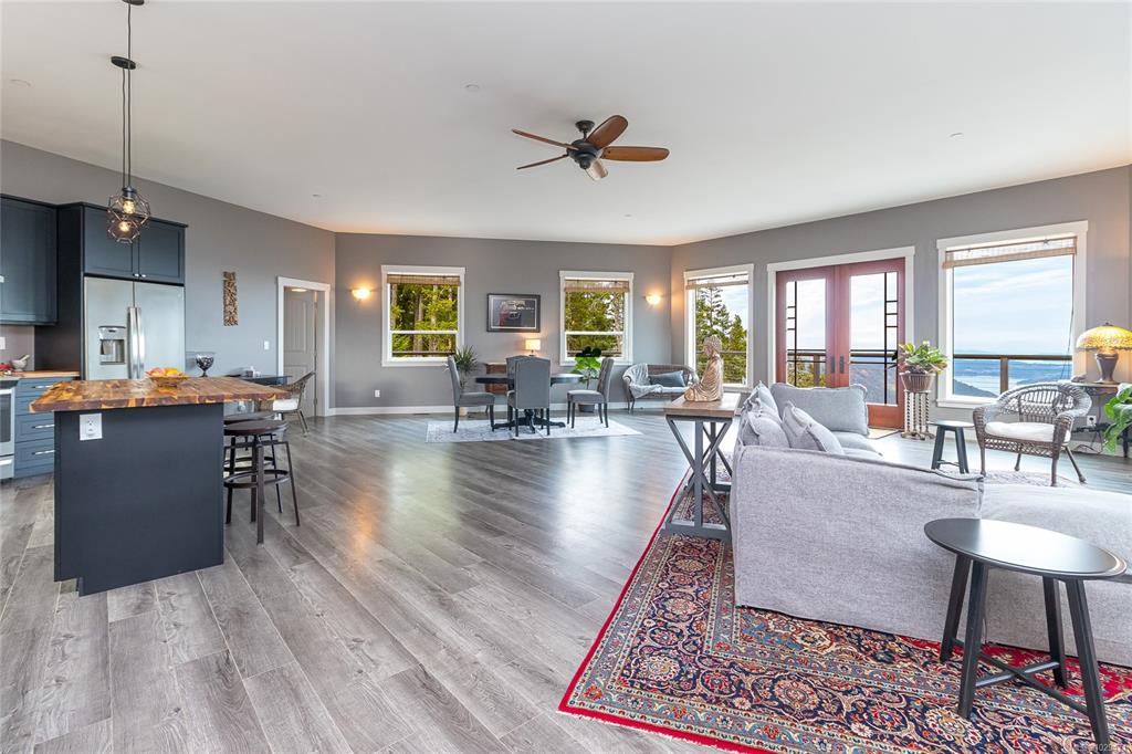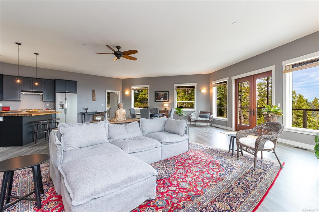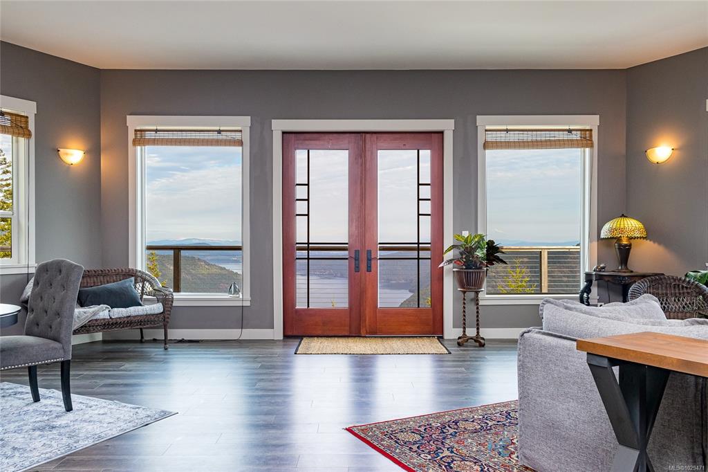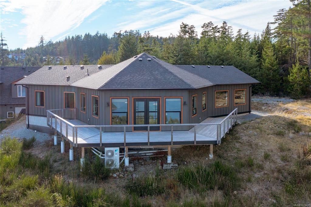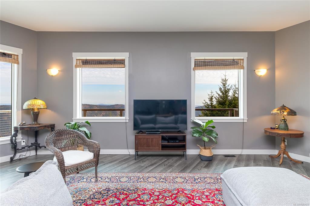 Escape to your own slice of paradise in this South facing 5.9 acre mountain top retreat located in Goldstream Heights. This modern 3-bed/2-bath rancher with a detached 1-bed carriage house & 1,225 sf triple garage offers STUNNING panoramic views of Finlayson Arm, Mt. Baker, the Gulf & San Juan Islands & downtown Victoria. Designed to showcase the views from nearly every room, the home features 10' ceilings, oversized windows, commercial grade patio doors, a gourmet kitchen, luxurious primary bedroom with sp...