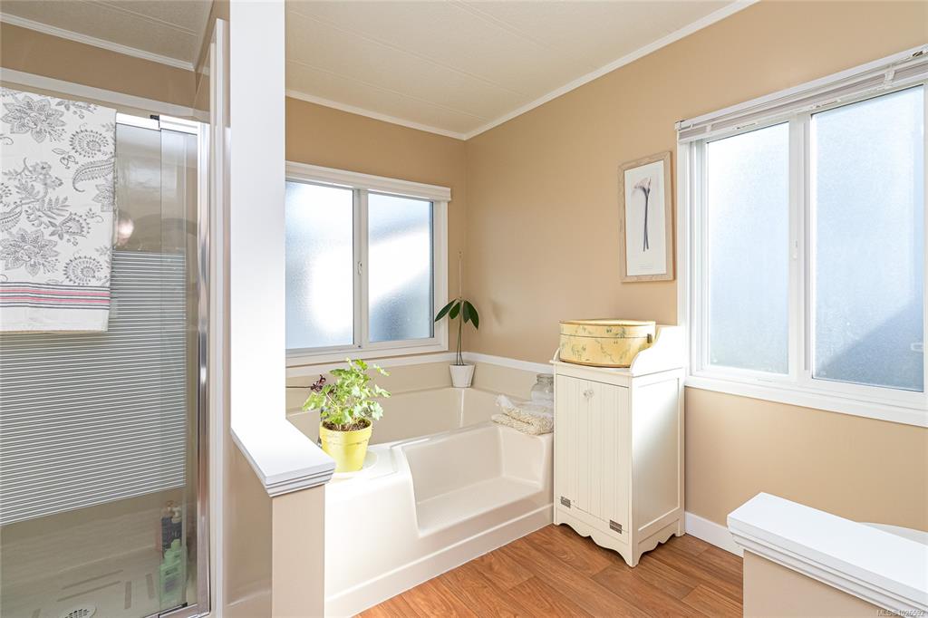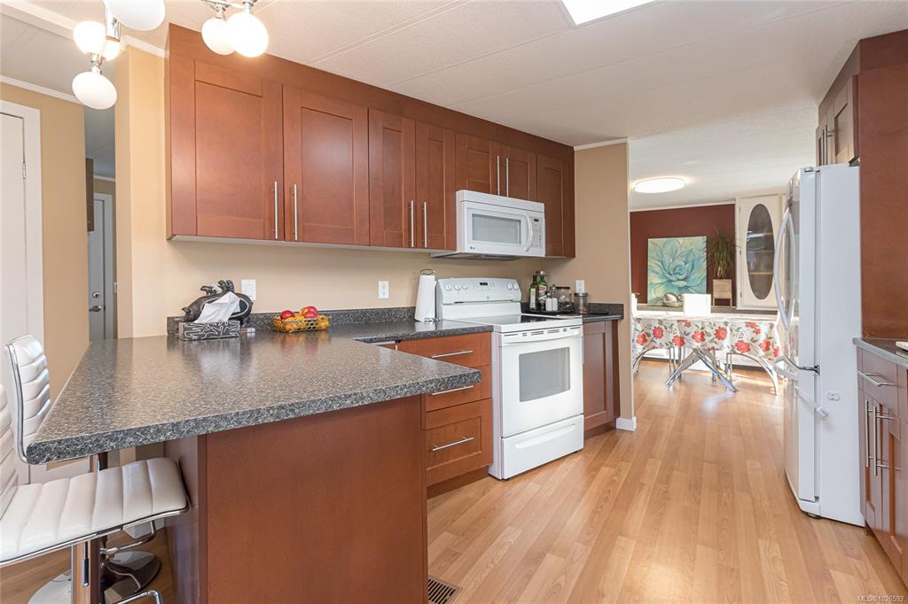 Welcome to this wonderfully maintained double-wide manufactured home w/ over 1,400 sq. ft. of bright, functional living space. The floor plan features a private master bed with a 4-piece ensuite, 2 additional beds & a 2nd 4-piece bath at the opposite end of the home. The heart of the home boasts a spacious living room, a dining area featuring a classic built-in hutch with deck access. A bright kitchen with abundant counter space & cabinetry, & bar seating. A separate family room offers the perfect flex spac...