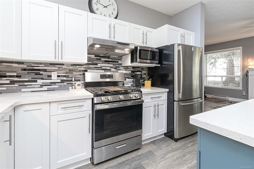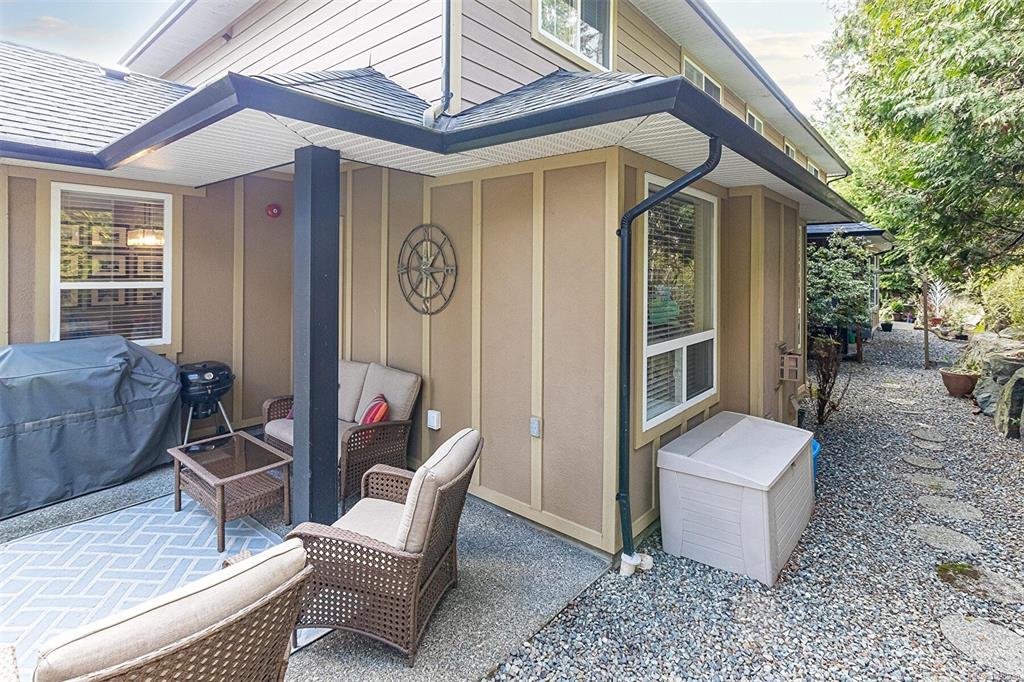 Welcome to this executive townhouse in View Royal in "Hidden Oaks". This 3 bedroom 3 bathroom home is situated on a beautiful mature landscaped lot with a great outdoor patio and garden areas. The main floor of this home is very welcoming and offers a very open concept layout with great design and flow. From the gorgeous kitchen with island and huge and bright dining room adjoining the large family room with gas fireplace. Enjoy your private patio with gas bbq hookup and the mature and well maintained gar...