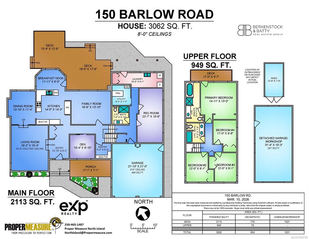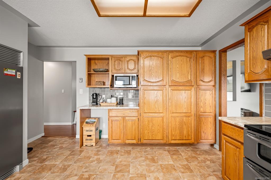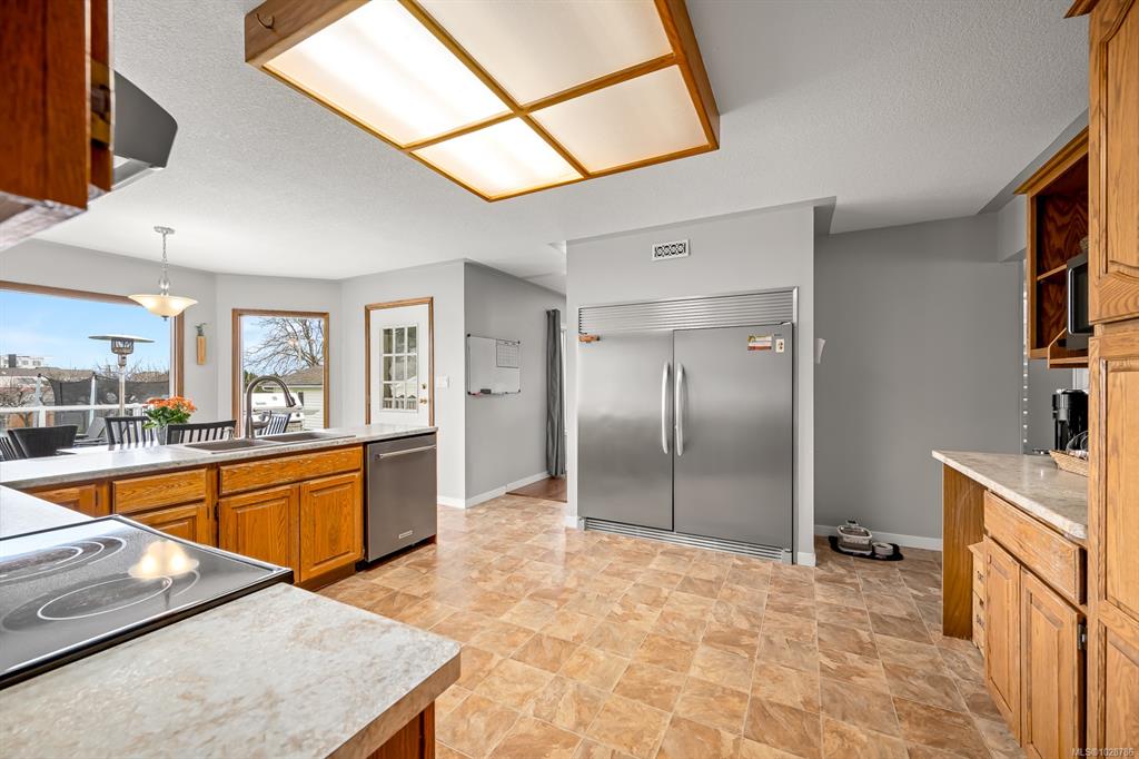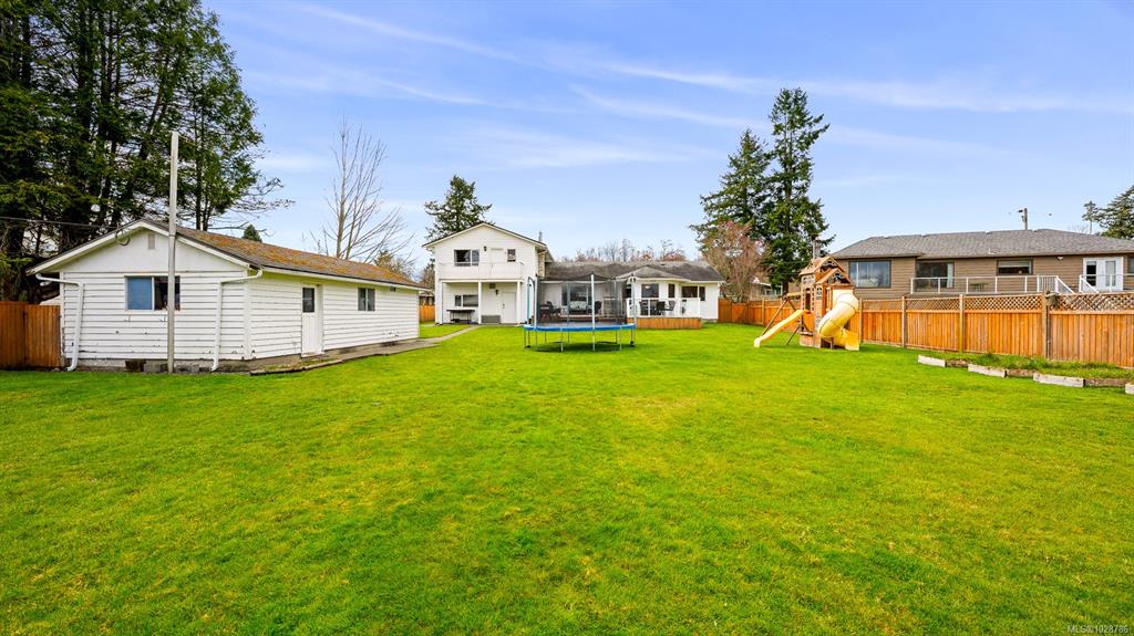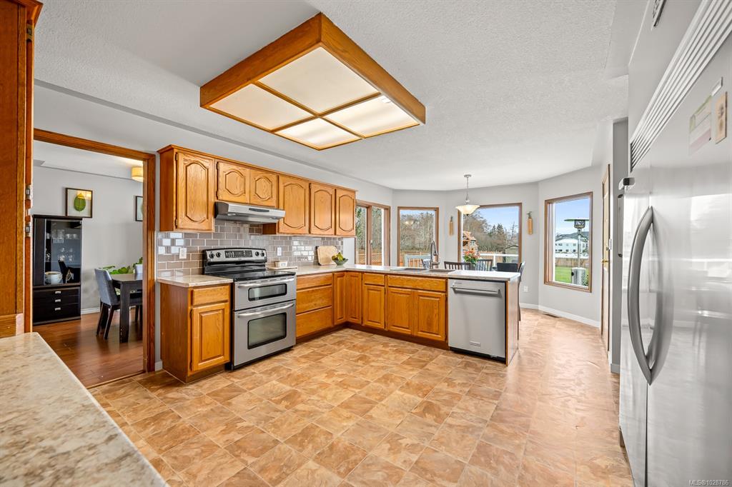 Located on one of the most desirable streets in Campbell River, this home offers an exceptional opportunity in a prime setting. Set on a 0.49 acre lot complete with a detached shop, double attached garage, & approximately 3,000 sq. ft. of living space. The main level welcomes you through the foyer into a cozy sunken living room with vaulted wood ceilings. At the heart of the home is the spacious kitchen with breakfast nook & access to the backyard, while the main floor is completed by a formal dining space,...