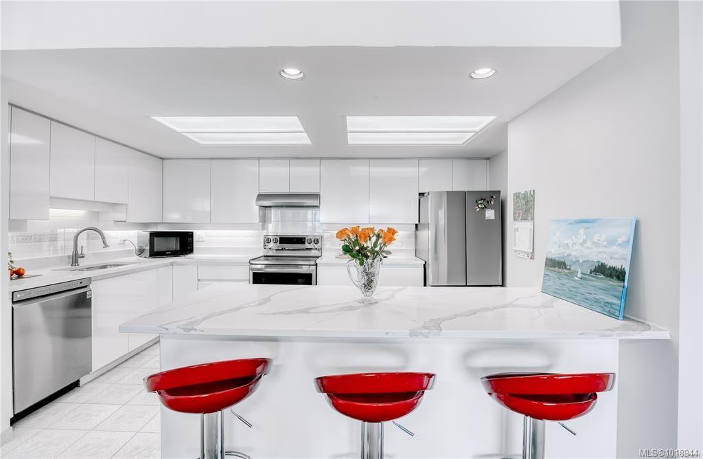 Discover this rare beautifully updated waterfront condo in the highly sought-after Newcastle Building, situated on prestigious Cameron Island in the heart of Downtown Nanaimo. This bright & spacious well-designed home complemented by a large covered deck showcasing one of the finest panoramic harbour views in the city, unobstructed ocean view from all the rooms. Inside upgrades include elegant countertops, plush carpeting, curtains, modern stainless steel appliances, in-suite washer & dryer—creating a conte...