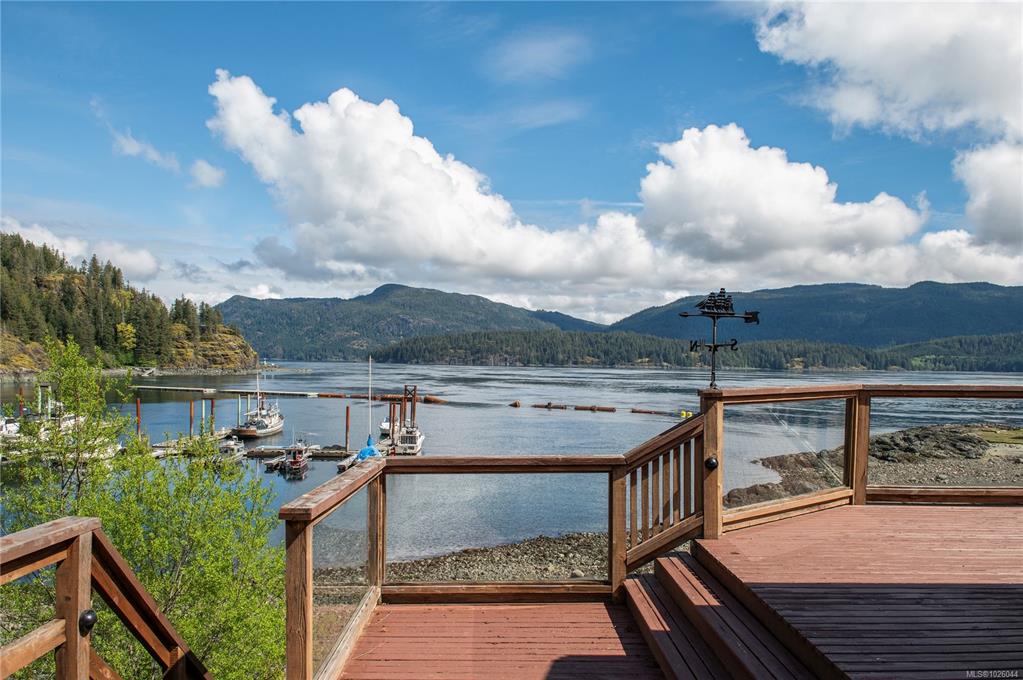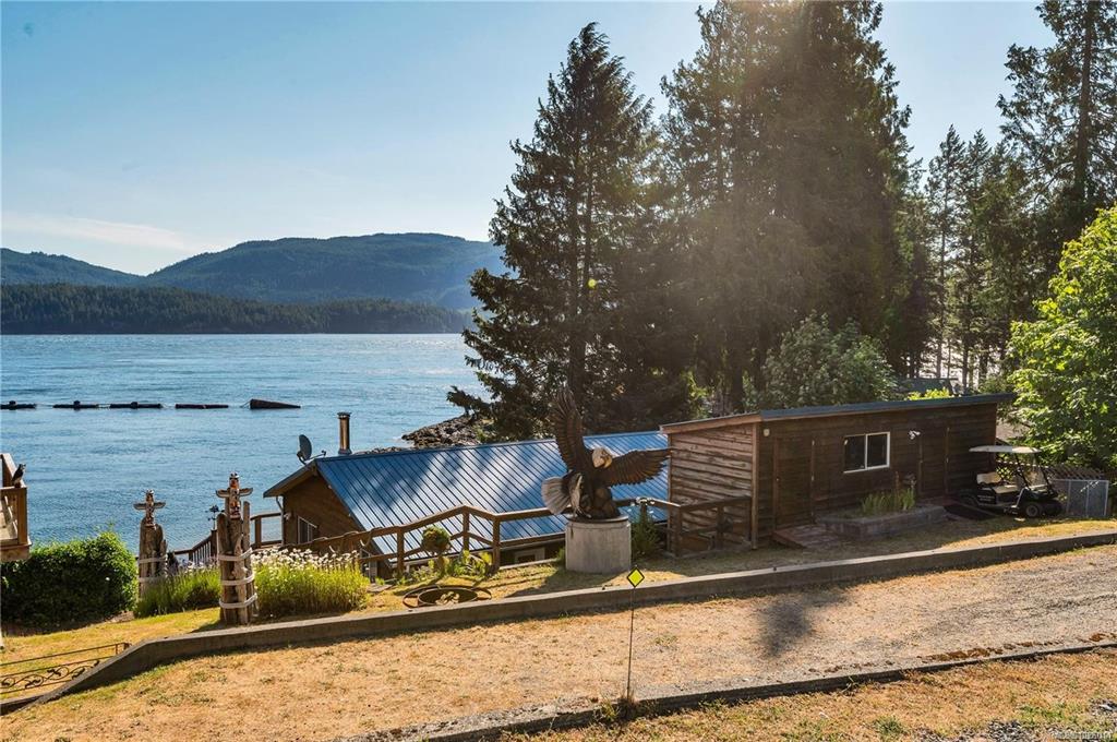 Fully furnished, turn key oceanfront bungalo featuring a wall of windows that give a cruise ship like feel to this spacious 2 bedroom 2 bathroom paradise. Big wrap around porch to kick back and bask in the sun, while watching the whales and cruise ships pass. Marina and floating restaurant just a short stroll away. Spend your days out exploring by boat then come home and cozy up by the wood stove on cool nights. Less than 30 minutes from Campbell River, this dream like vacation could be your everyday life o...
