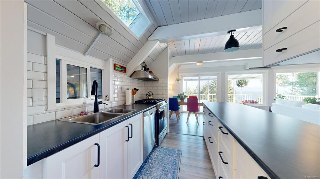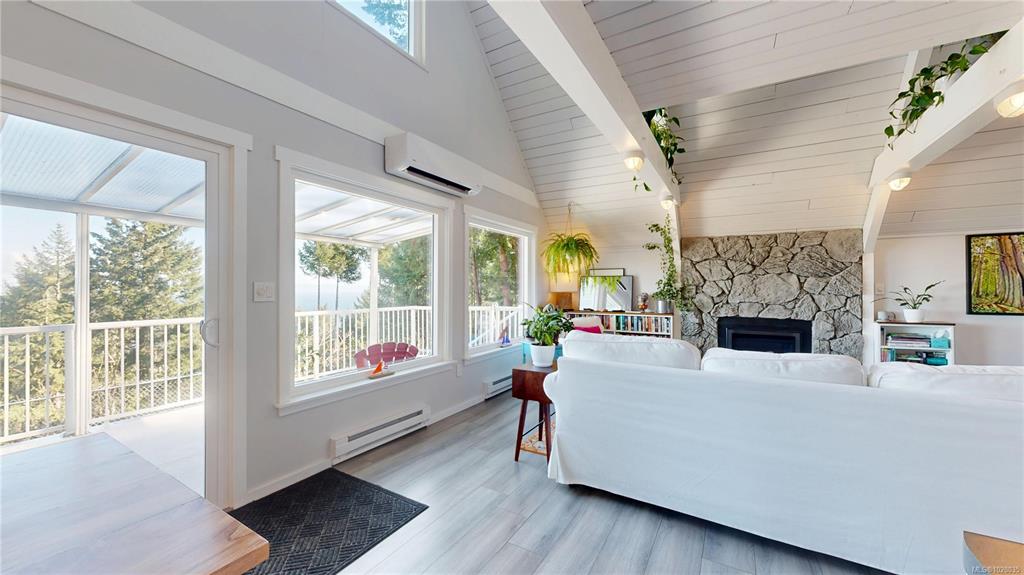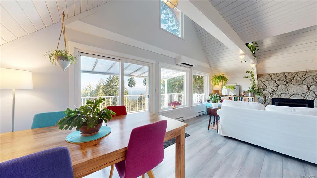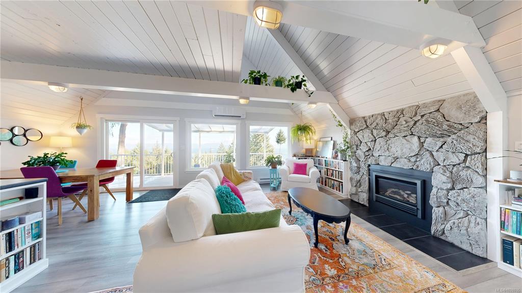 Stunning ocean and mountain views set the stage for this beautifully renovated 2-bedroom home on just over half an acre in a peaceful island setting. Vaulted wood ceilings and large windows fill the home with natural light and frame views of snow-capped mountains, passing ferries, and the ocean beyond. The updated interior features a renovated kitchen and bathroom, new windows, modern appliances including a propane stove, high-efficiency heat pump, and propane fireplace. A loft provides flexible space for a...