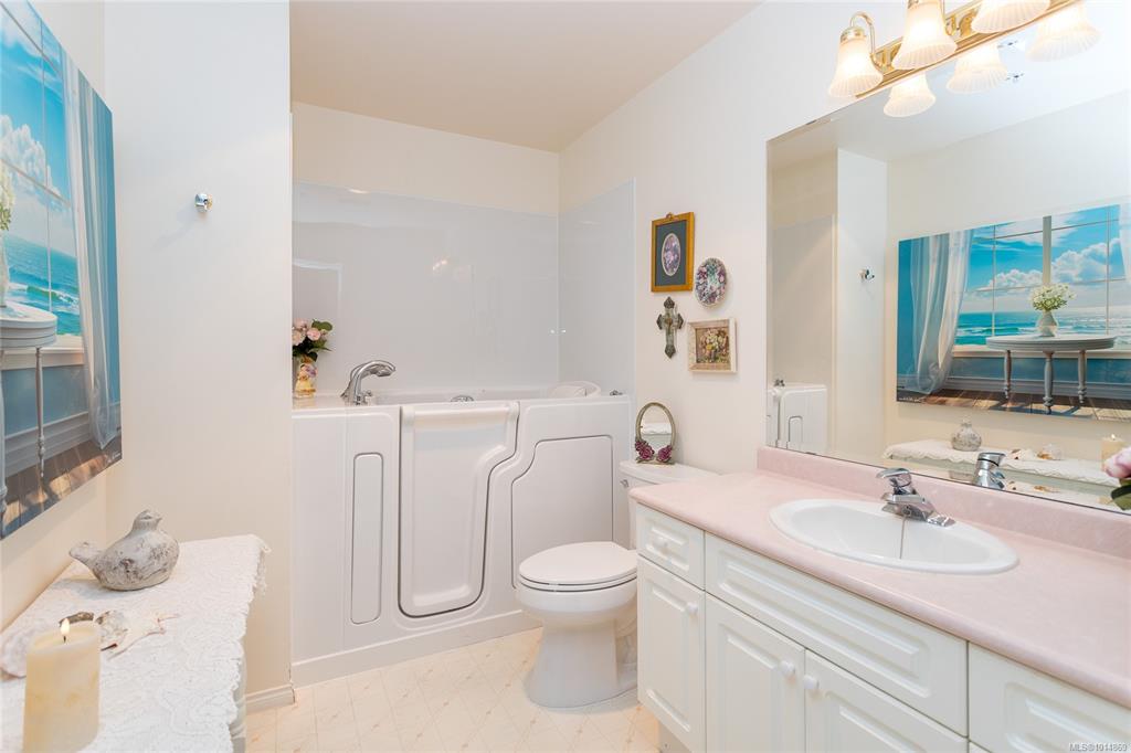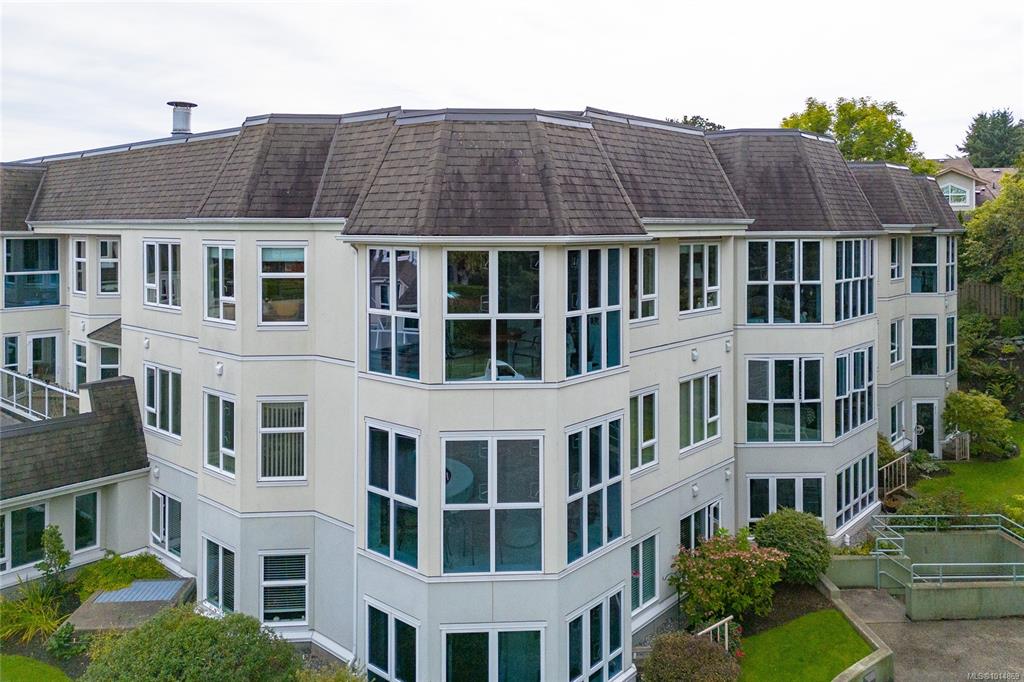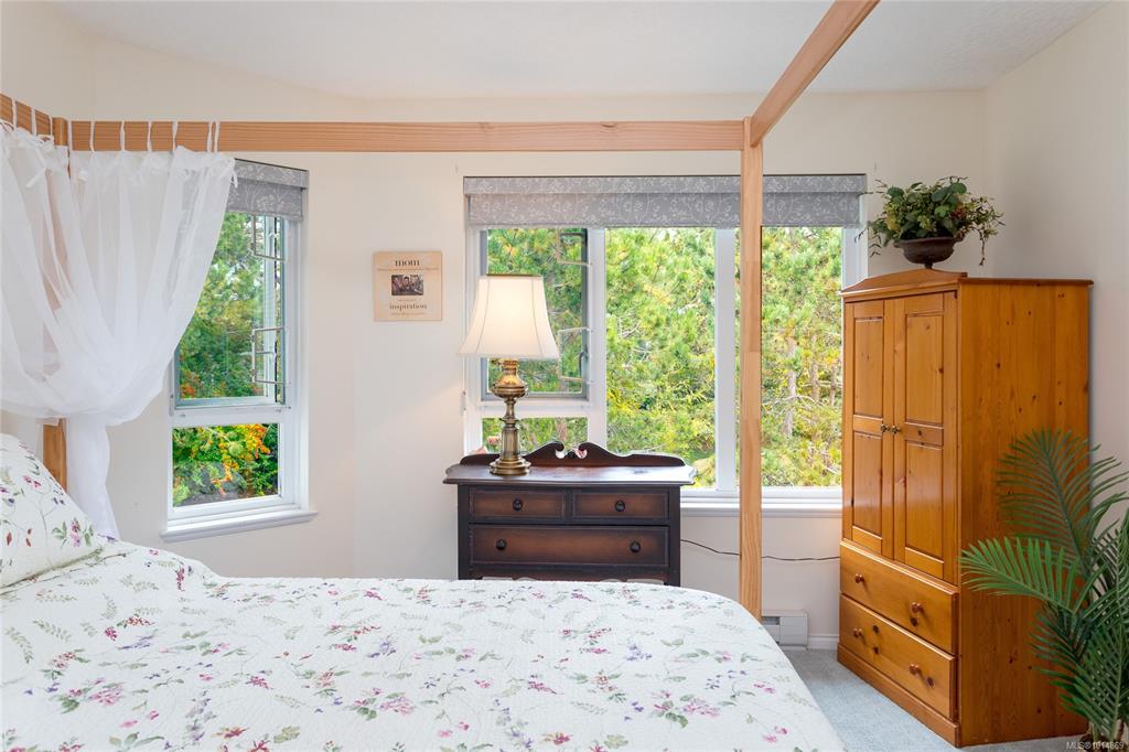 Bright and inviting, this top floor two bedroom, two bath suite offers expansive views and an abundance of natural light. The bedrooms sit on opposite sides of the living area for privacy, with the primary featuring a walk-in closet and full ensuite, while the second has a three-piece bath nearby. Updates include a new walk-in soaker tub, fresh carpet, modern window coverings, and newer flooring throughout the main living spaces. Skylights in the sunroom and entry add to the airy feel. Ophir Place is more t...