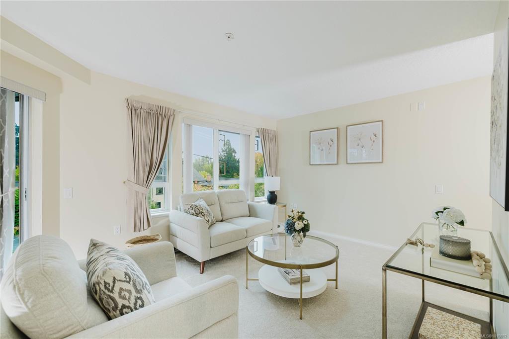 Welcome home to this bright, elegantly updated 2-bedroom corner unit with views of Mt. Tolmie from your living room window. This is more than just a beautiful home, it's a community! Located at the very popular "Ophir Place," the activities and amenity rooms at this property are amazing, and you will have many opportunities to spend time with your neighbours including the exercise room, billiards room, lounge, library and guest suite. Inside, this unit has been beautifully updated including new flooring thr...