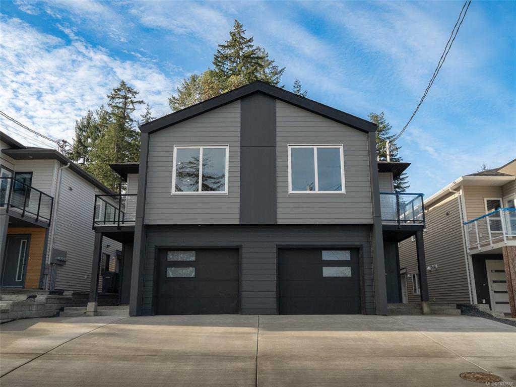 Brand new and stunning, move-in-ready half duplex with a LEGAL SUITE in the highly sought-after Chase River neighbourhood. This thoughtfully designed 1,967 sq ft home delivers modern comfort and flexibility. The main level features 2 bedrooms plus a den/flex room (with closet), 2 bathrooms, 9-ft ceilings, quartz countertops, stainless steel appliances, and an energy-efficient heat pump providing both heating and air conditioning. Downstairs, a fully legal 2-bedroom suite with private entrance (and an AC uni...