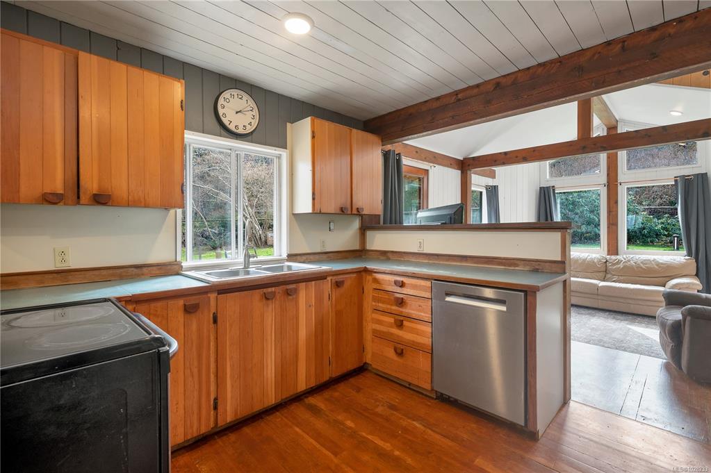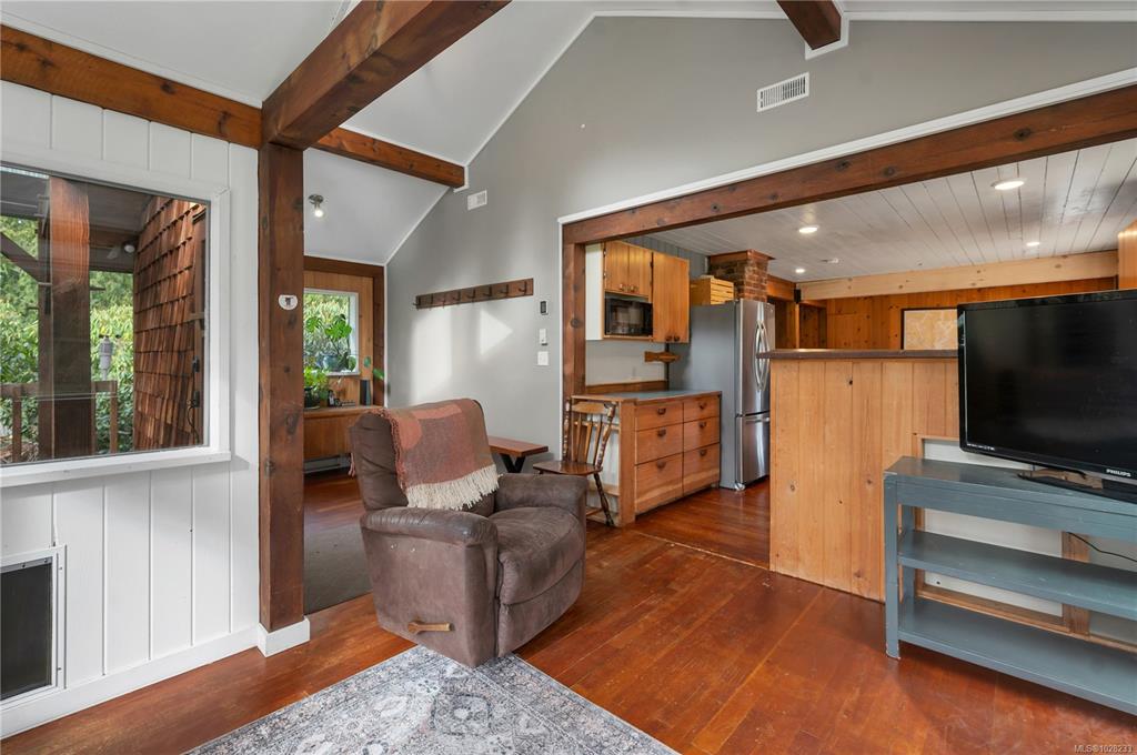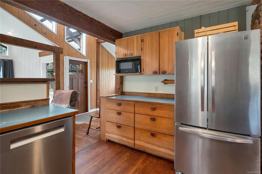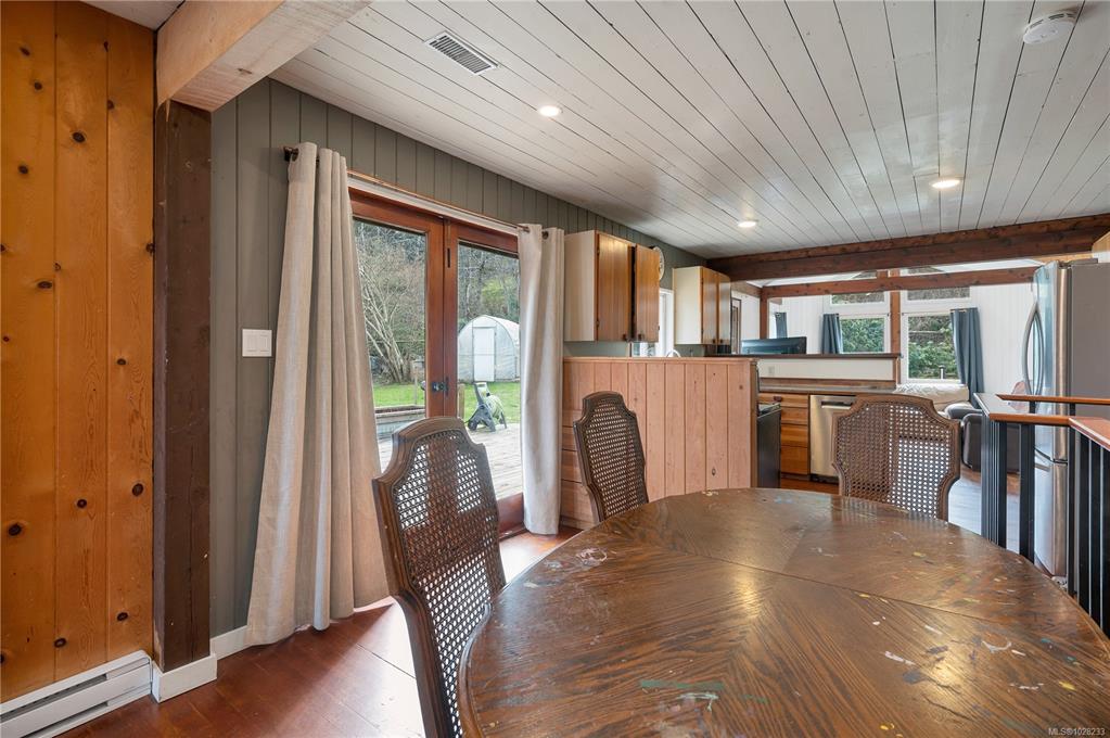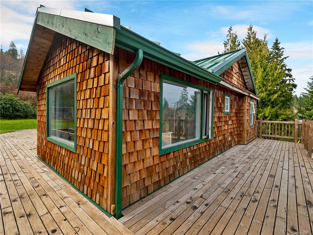 Heriot Bay home & overheight shop on 0.55 acre lot, featuring partial ocean views and in a great walkable location! The main level entry home with partially finished daylight basement boasts many updates in recent years including metal roof, upgraded underground 200amp electrical service & updated heat pump forced air system on the main floor & in-floor hot water heating system on the lower floor. There is hardwood flooring throughout the main level & nice wood features including exposed wood beams. There a...