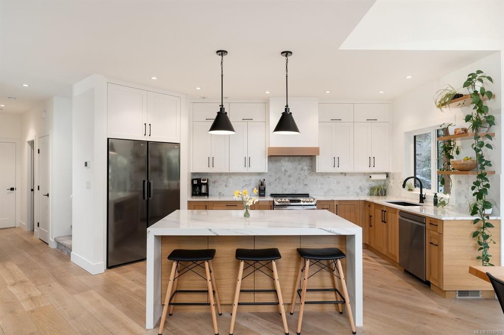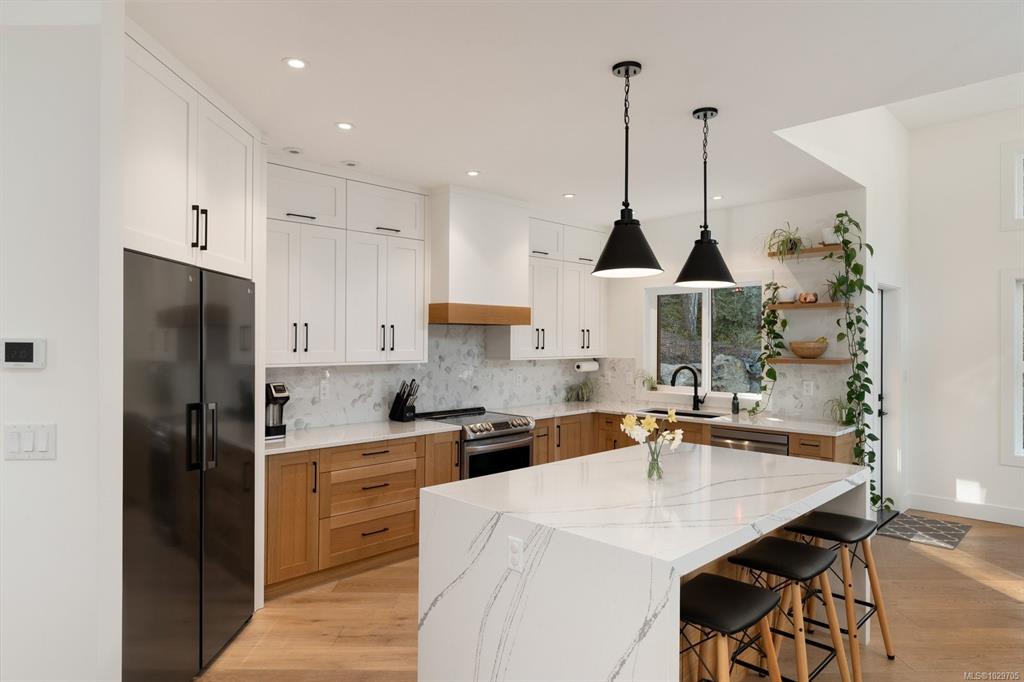 Custom built in 2022, this exceptional North Saanich property offers luxury, privacy, and flexibility on a stunning 1.3 acre lot backing onto Horth Hill Regional Park. Tucked at the end of a quiet cul-de-sac, the home features a 3 bed plus den, 3 bath main residence and an attached 1 bed, 1 bath legal suite, ideal for extended family, guests, or added income. The expansive 3 bay garage includes an oversized ceiling in one bay, offering excellent space for storage, vehicles, or hobbies. Outdoor living shines...