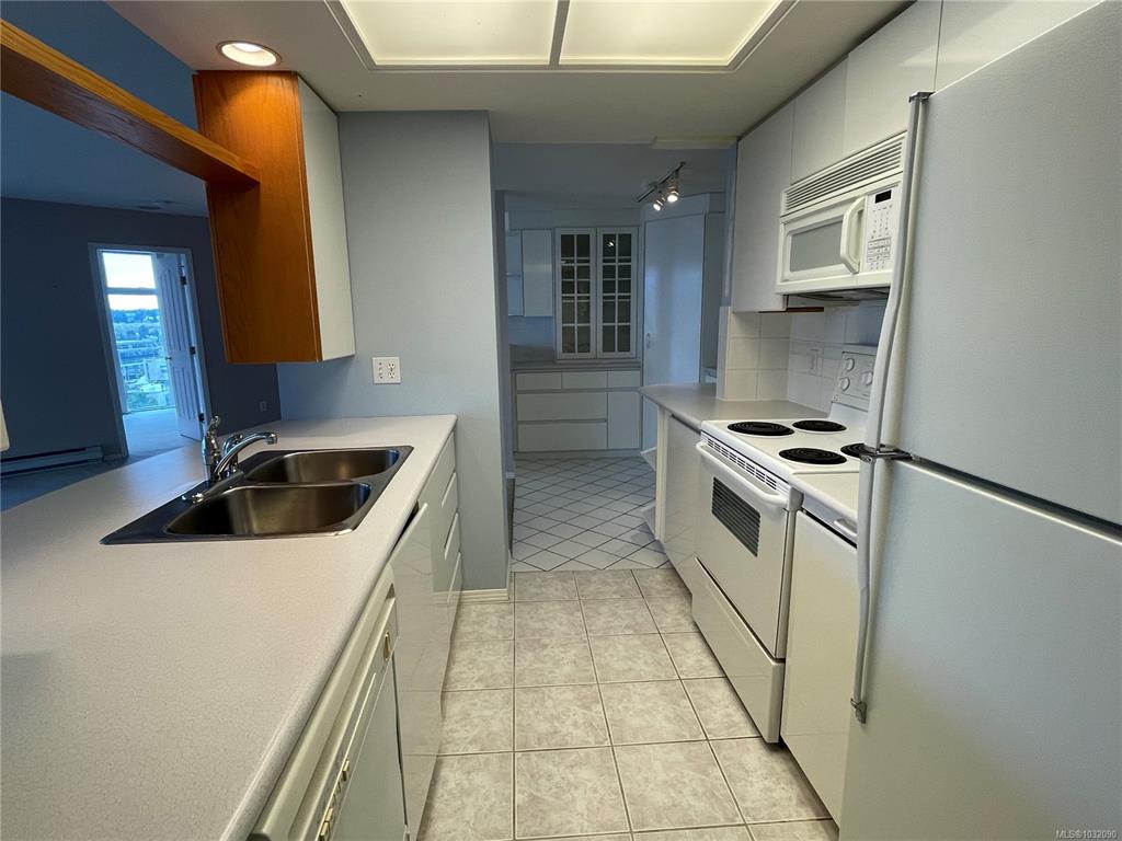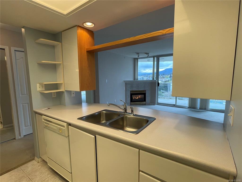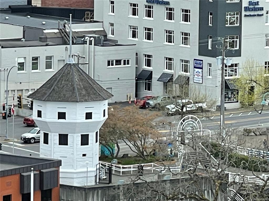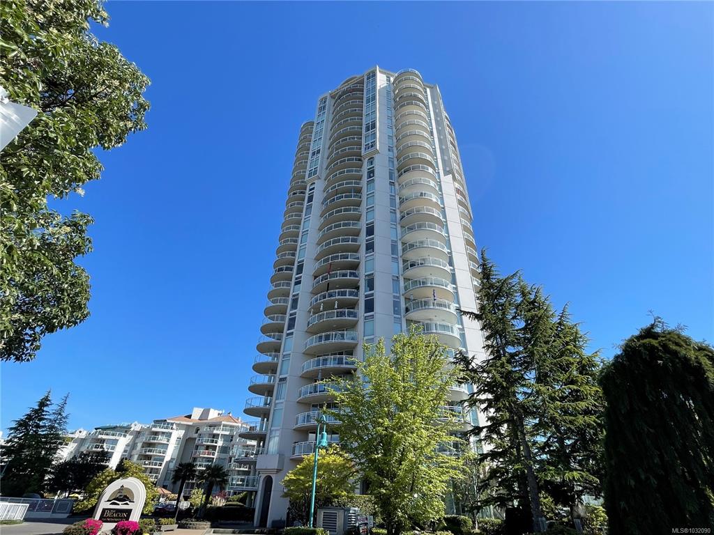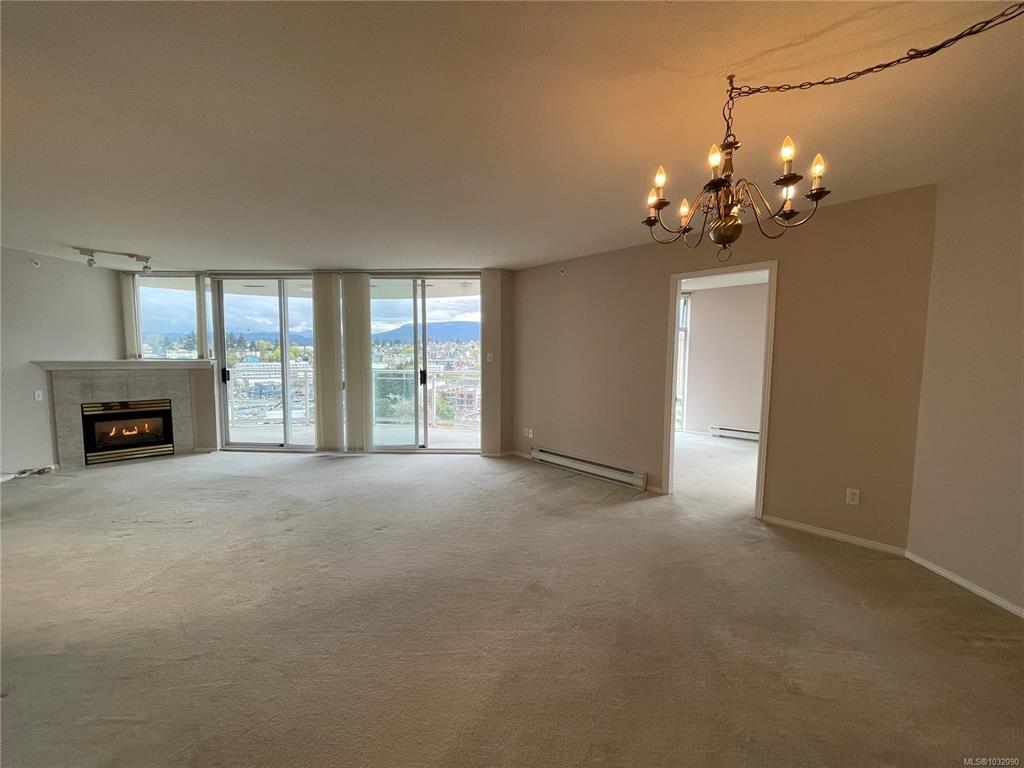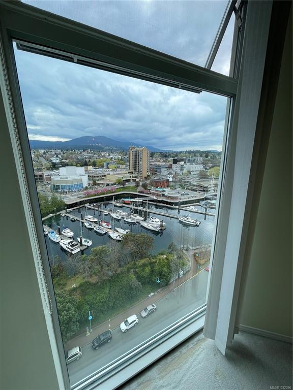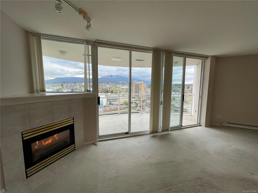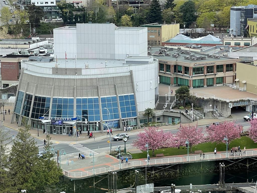 Enjoy outstanding south & west views of the downtown harbour, marina, Port Theatre, Mt. Benson and sunsets from this 16th floor, 2 bedroom, 2 bath suite. Spacious open 1153 sq.ft. floor plan. This suite has a unique butlers kitchen area with additional cupboards and huge pantry. The living room is very large & open & features a corner gas fireplace. Both bedrooms have excellent views. The new owner will want to replace the flooring & freshen the walls with paint. Great opportunity to choose your favourite c...