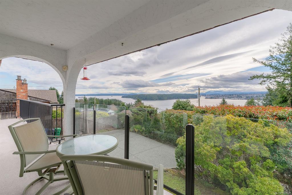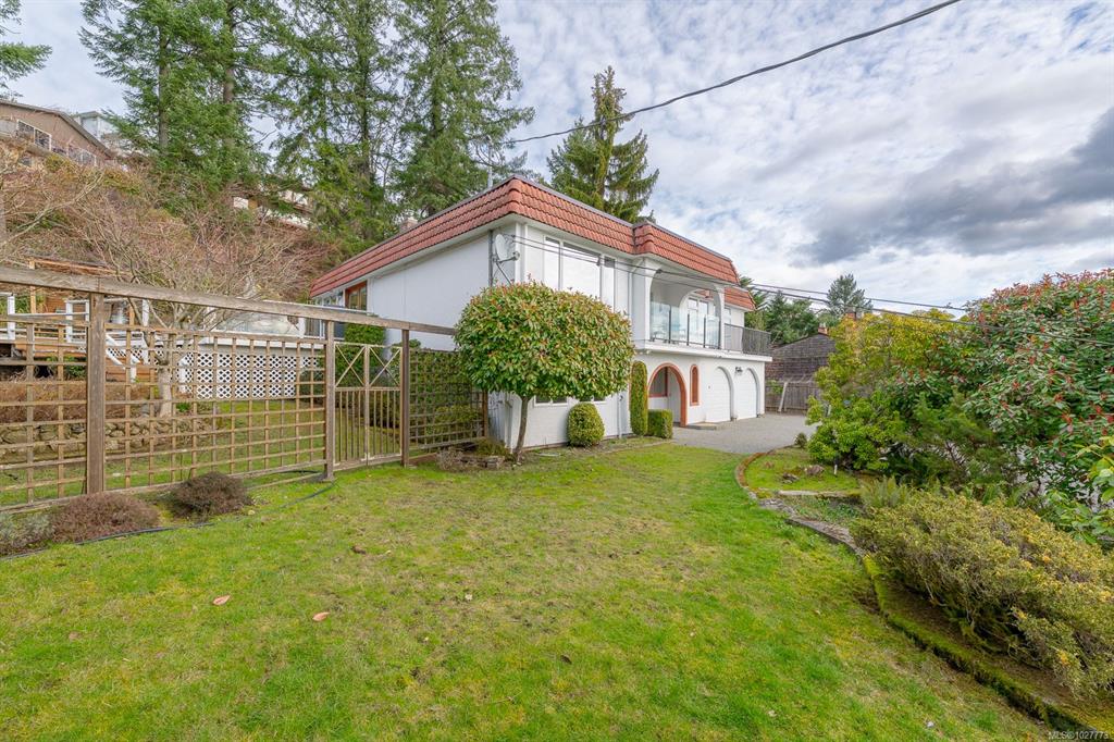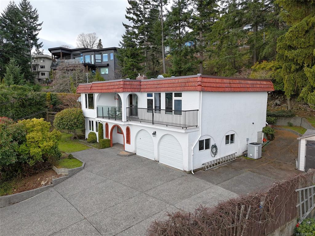 First time on the market in over 40 yrs; this Southern exposure Departure Bay home has so much to offer! Sitting on over 1/4 acre and spread across 2 levels, this home has 3 bedrooms including a massive primary with incredible ocean and city views. Built in a Spanish style and offering 2300 sq ft of living space + a double garage and workshop, this property is ready for it's next owners and some fresh ideas. Through the large entry and up the stairs, you'll be greeted by the naturally bright living and dini...