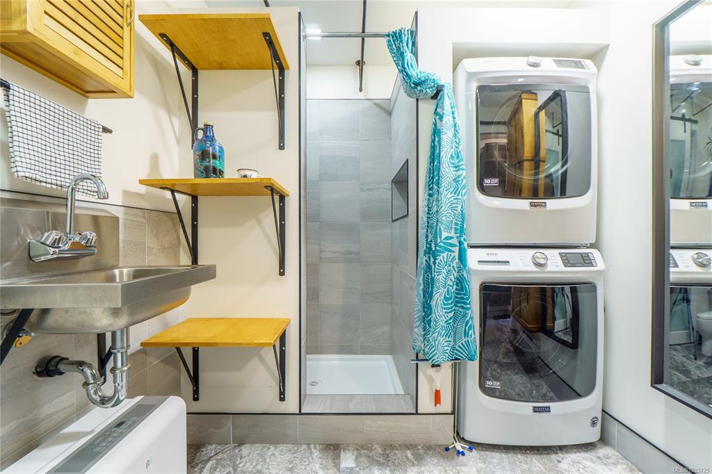 Welcome to Eagleview Manor in sunny, central Ucluelet, walking distance to schools, shops, restaurants, recreation, and the beach. This bright 1,064 sq ft, 2-storey, 2 bed, 2 bath home offers a functional layout w/ numerous updates. The open-concept main floor features updated appliances, flooring, window coverings, new h/w tank, and a renovated powder room now a full 3-pce bath with laundry, storage, and wetsuit space. Natural light fills both levels, and an accessible crawl space adds extra storage. Upsta...