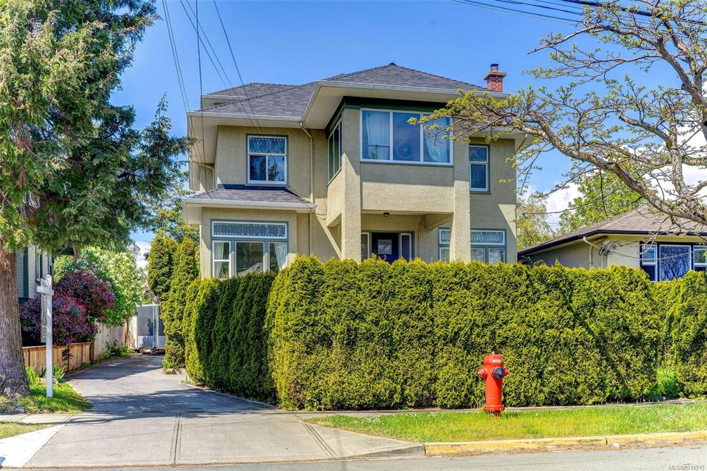 JUST LISTED! Charming 1912 legal triplex blends character & opportunity just steps from Dallas Road. Set on a nearly 6,000 sq ft lot, this 3-level character home offers three self-contained suites—each with private entry—making it ideal for multigenerational living or investment. Notable features include rebuilt chimney, coffered ceilings, hardwood floors, & elegant built-ins. The upper suite enjoys treetop views, a bright home office, & private deck; the lower level offers a full 1-bed suite. Thoughtful up...