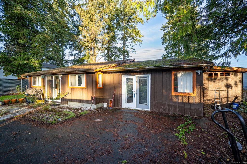 Situated near CFB Comox, this 1,120 sq ft home presents a practical opportunity for buyers looking to update and make a space their own. Set on a fully fenced and gated 0.19-acre lot, the property is surrounded by mature trees that offer privacy and a sense of seclusion. Inside, the home features a spacious kitchen, one large bedroom, a living room with a propane stove and access to the backyard, and a versatile flex room that was formerly the garage. Finished with classic wood board-and-batten siding and c...