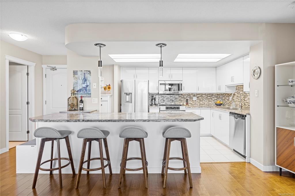 Welcome to this bright and spacious 2 bedroom 2 bathroom condo in the highly regarded Gabriola Building at Cameron Island. Offering 1,072 sq ft of thoughtfully designed living space and beautiful ocean views, this home provides a comfortable and low maintenance lifestyle in one of Nanaimo’s most sought after waterfront communities. The open concept living and dining areas are filled with natural light and connect seamlessly to a functional kitchen with generous cabinetry, prep space, and room to entertain. ...