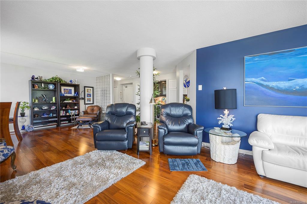 Experience luxury living in this stunning 2 bed, 2 bath 5th floor penthouse condo in the prestigious Gabriola building at Cameron Island, nestled in the heart of downtown Nanaimo. Spanning over 1,700 sq ft of refined interior space, this home offers views of the ocean, city, & mountains through floor-to-ceiling windows & from the expansive 1,000 sq ft private patio. Inside, enjoy rich hardwood & tile flooring, granite countertops, & sleek, newer cabinetry that blends functionality with elegance. The open-co...