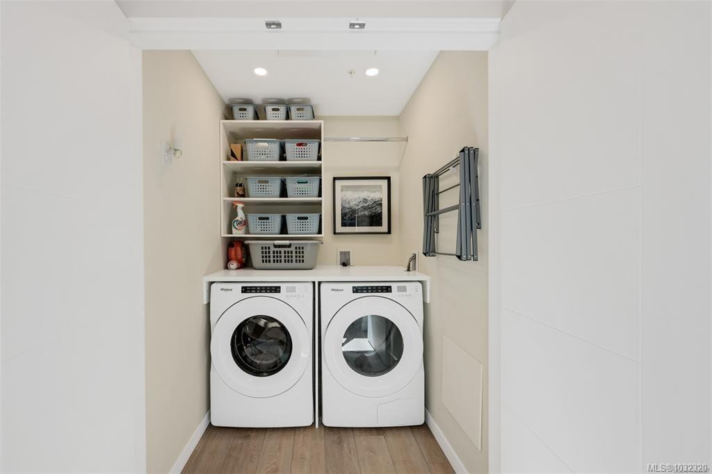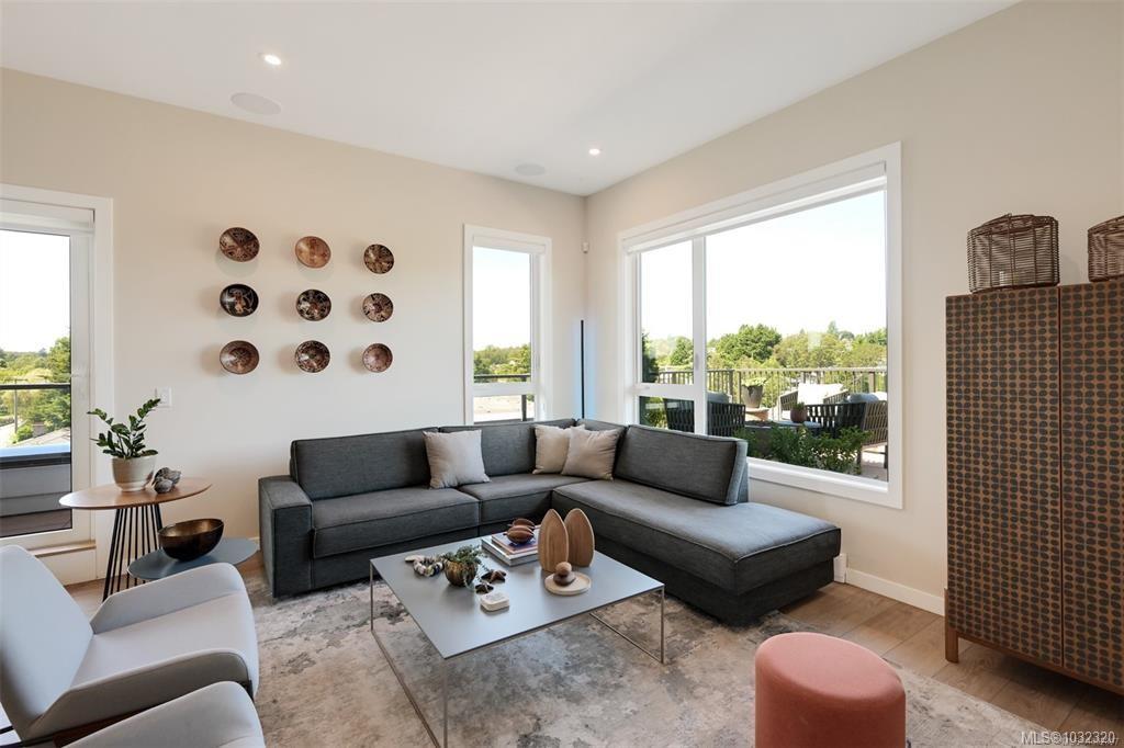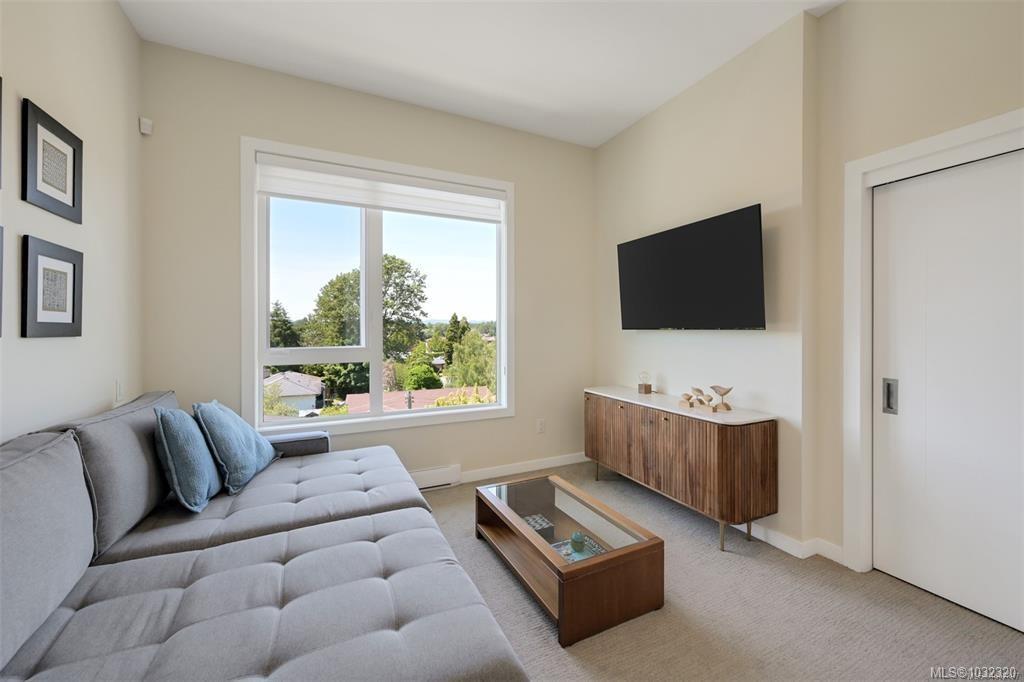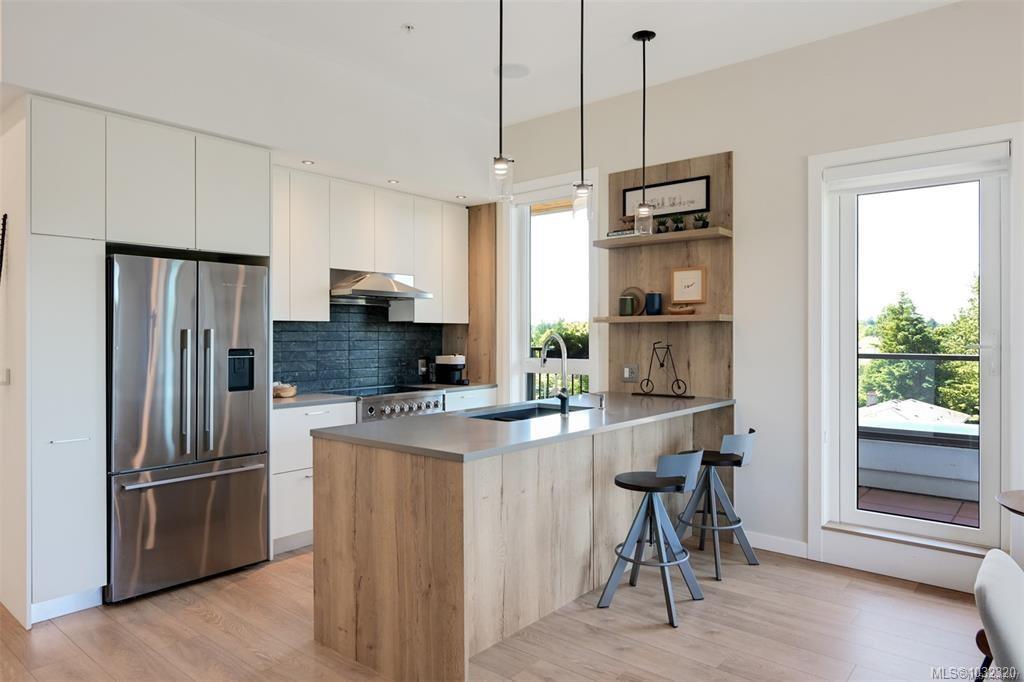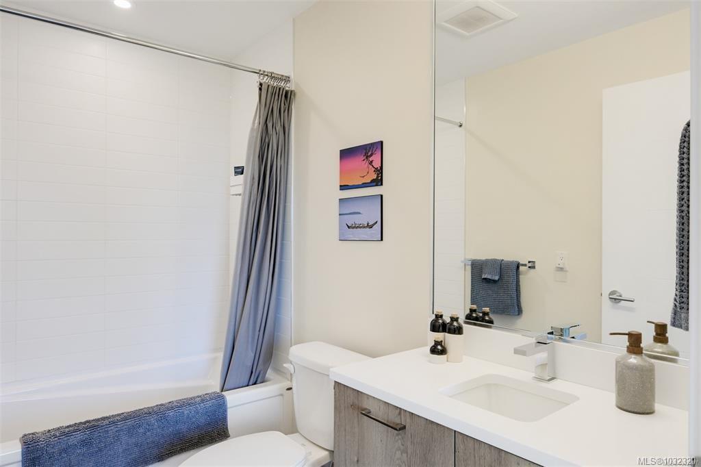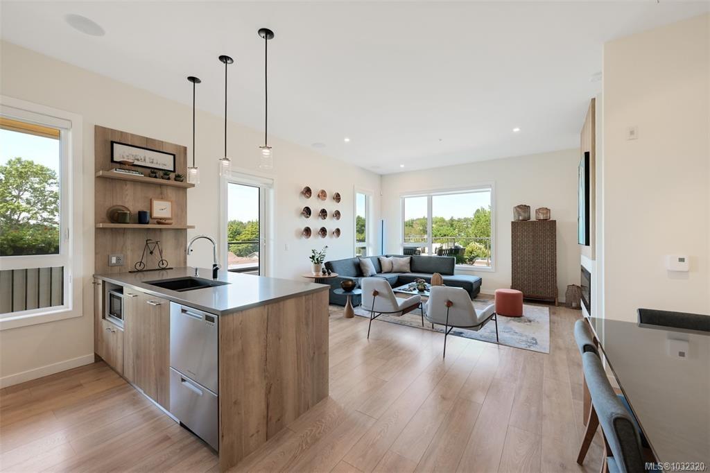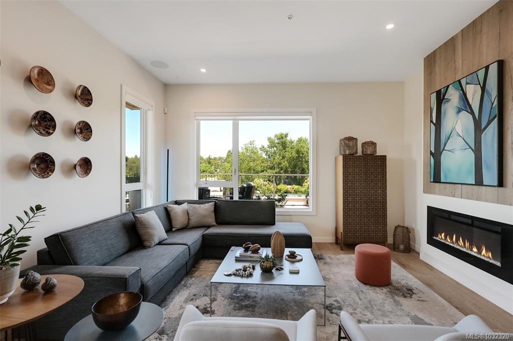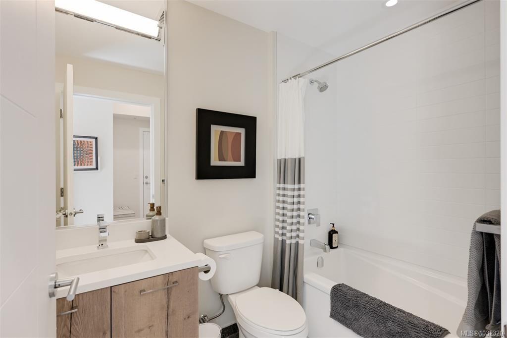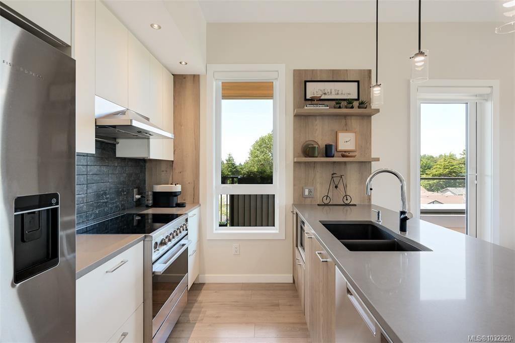 Experience elevated living in this like-new top floor corner penthouse offering nearly 1,300 sq ft of beautifully finished interior space, complemented by an impressive 600 sq ft west-facing terrace with distant views of the Sooke Hills. The well-designed layout features 2 spacious bedrooms, each with its own ensuite and ample closet space, plus a third full bathroom for guests. A bright, separate den provides an ideal space for working from home. The open concept living area is enhanced by 10' ceilings, ex...