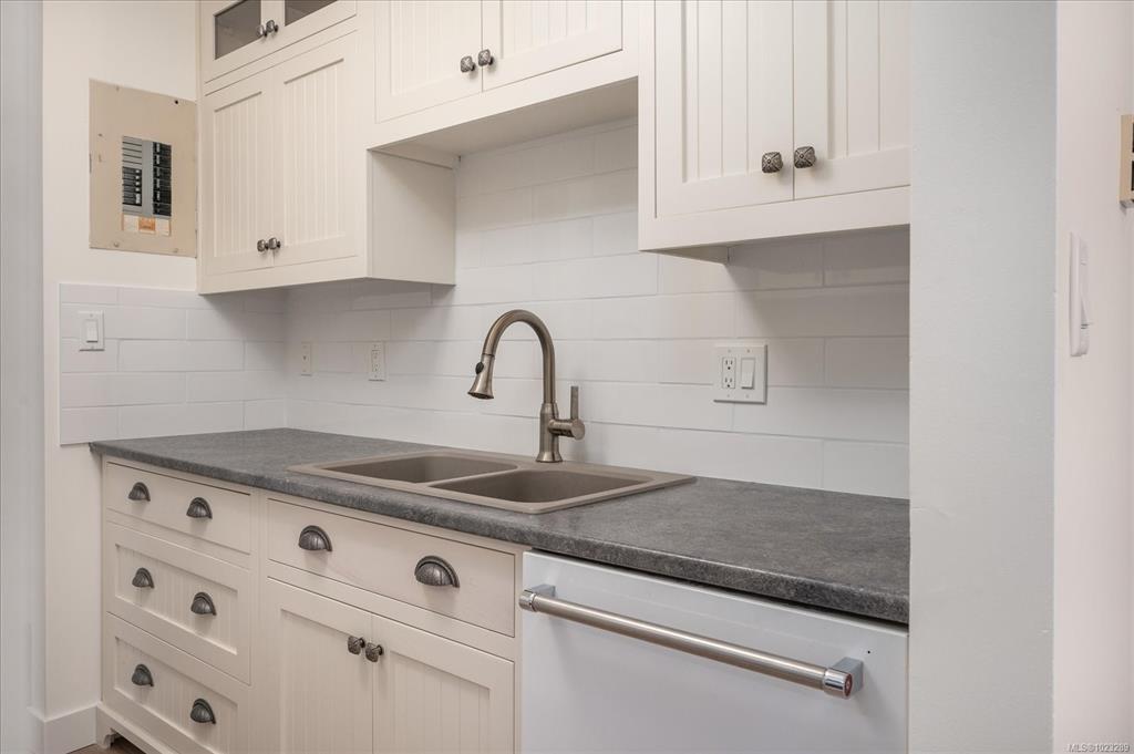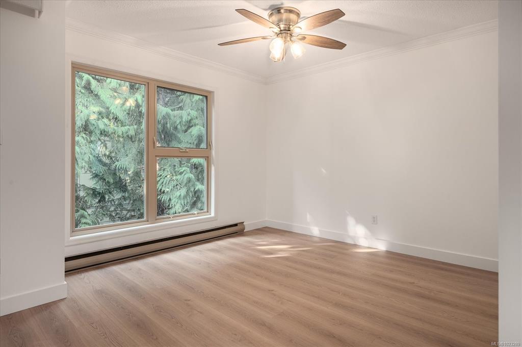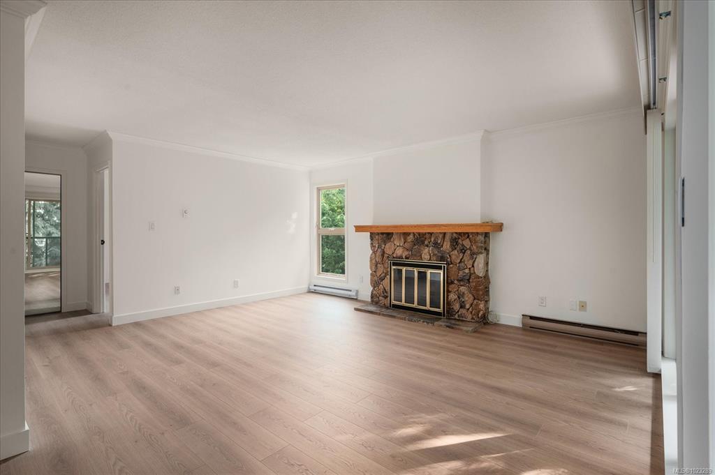 Stylish, spacious & updated, this 2-bed/2-bath top floor, corner condo blends comfort, convenience & privacy. The well-appointed kitchen has quality appliances inc. new fridge, custom cabinetry & ample storage, opening to the adjoining large dining & living rooms w/ lovely fireplace feature ready for an insert. A covered balcony enjoys a tranquil, treed outlook for added privacy. The large primary bedroom is a true retreat w/ double closets & renovated ensuite, while the second bedm & main bath with barn d...