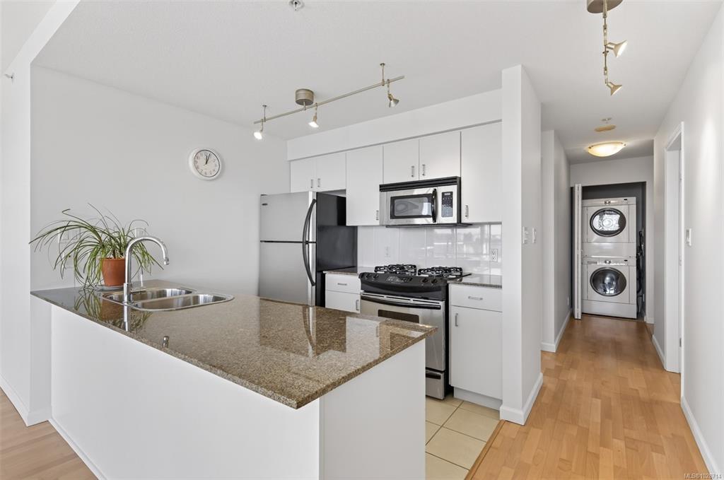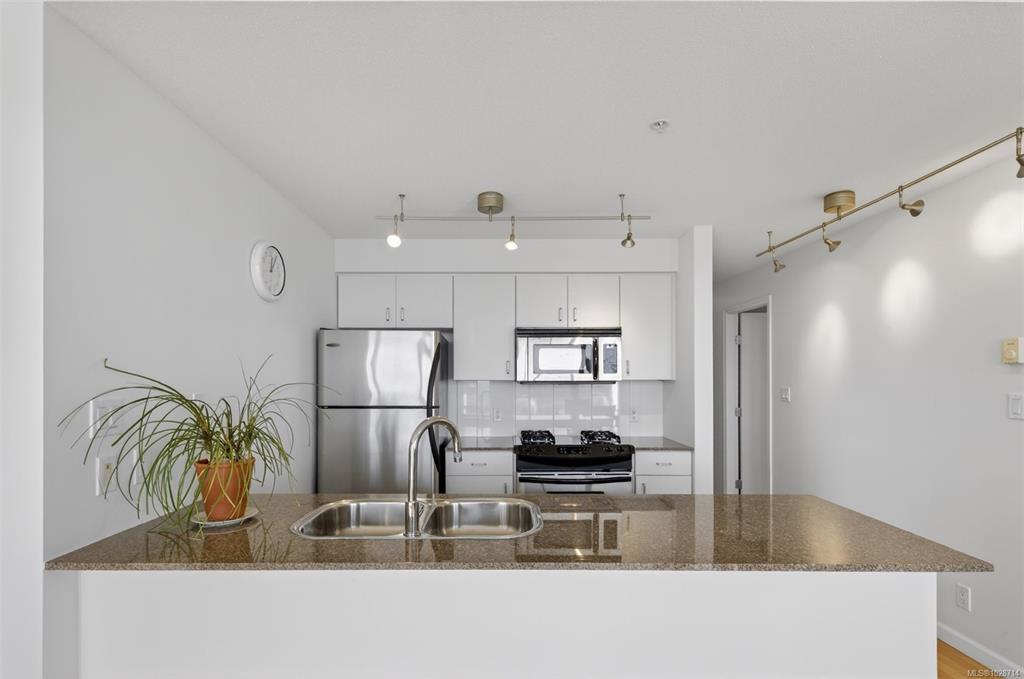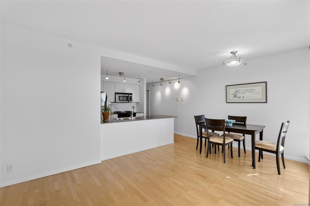 Location truly sets this home apart. This bright and sun-filled two-bedroom corner condo is ideally situated with every amenity at your doorstep making it easy to leave the car at home. With only one shared wall, the home offers exceptional privacy and quiet living. Floor-to-ceiling windows flood the space with natural light and open onto a generous deck with sweeping views over the park, stretching toward the harbour and Olympic Mountains. The well-designed layout features two spacious bedrooms, including ...