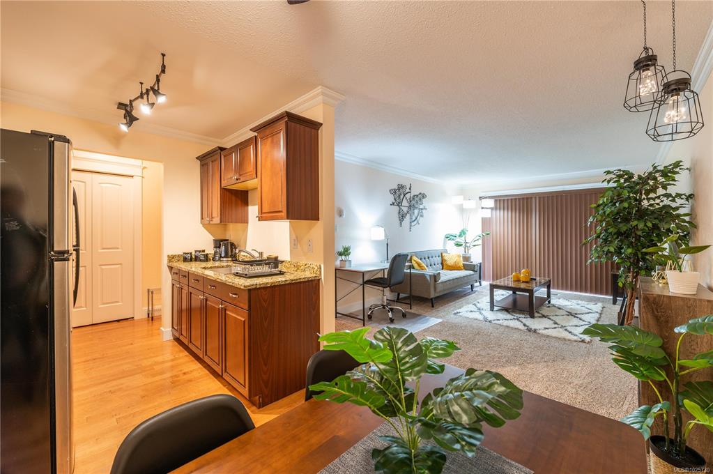Enjoy effortless city living in this beautifully maintained one bedroom, one bathroom ground-floor corner condo, just a five-minute walk to Nanaimo Regional General Hospital. Grocery stores, cafés, pharmacy, transit, and everyday amenities are nearby, creating a walkable and convenient lifestyle. The move-in-ready interior features granite countertops, rich cherry wood cabinetry, and a functional layout. The in-suite laundry is a rare and valuable feature. Major exterior upgrades are underway, including new...