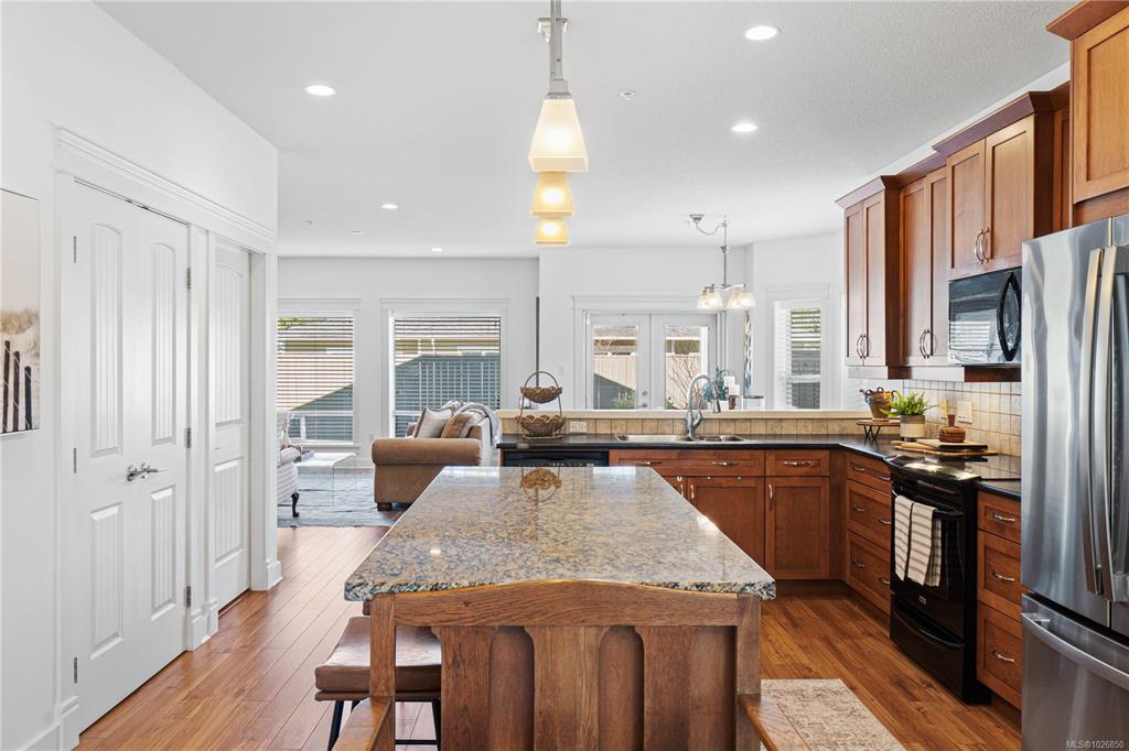 STYLISH PATIO LIVING IN AN UNBEATABLE LOCATION. This beautifully maintained home in sought-after Estuary Place offers effortless living just steps to the Englishman River Estuary, parks, transit, shopping & the beach. Enjoy a sunny front yard south-facing covered patio and a private extended outdoor backyard retreat with gas BBQ hookup, perfect for relaxing or entertaining. Inside, 9’ ceilings and oversized windows fill the open kitchen, living & dining space with light. The upgraded kitchen features rich w...