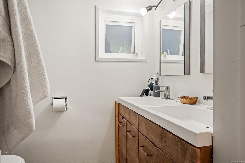 Charming, Energy Efficient & Suited! Placed on almost ¼ acre lot, situated on a no-through street in the heart of Central Nanaimo, the spacious 2,300 sq ft of living space is split equally between 2 levels. Upstairs has mid-century charm with hardwood floors in each of the 2 bedrooms, but modern conveniences including a shaker style kitchen, ductless heat pumps & bathroom with double sinks & new soaker tub. 308 sqft sunroom overlooks the spacious backyard & allows you to enjoy the outdoors year round. A com...