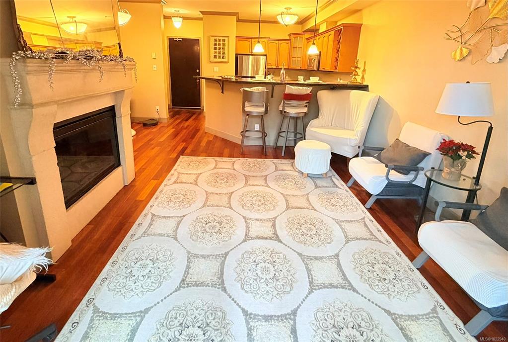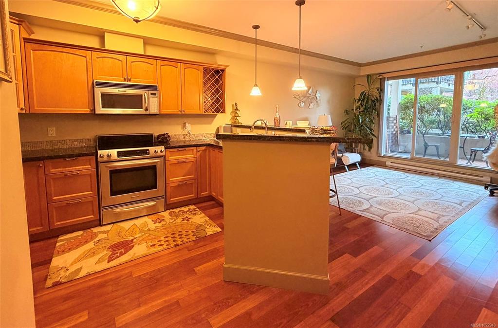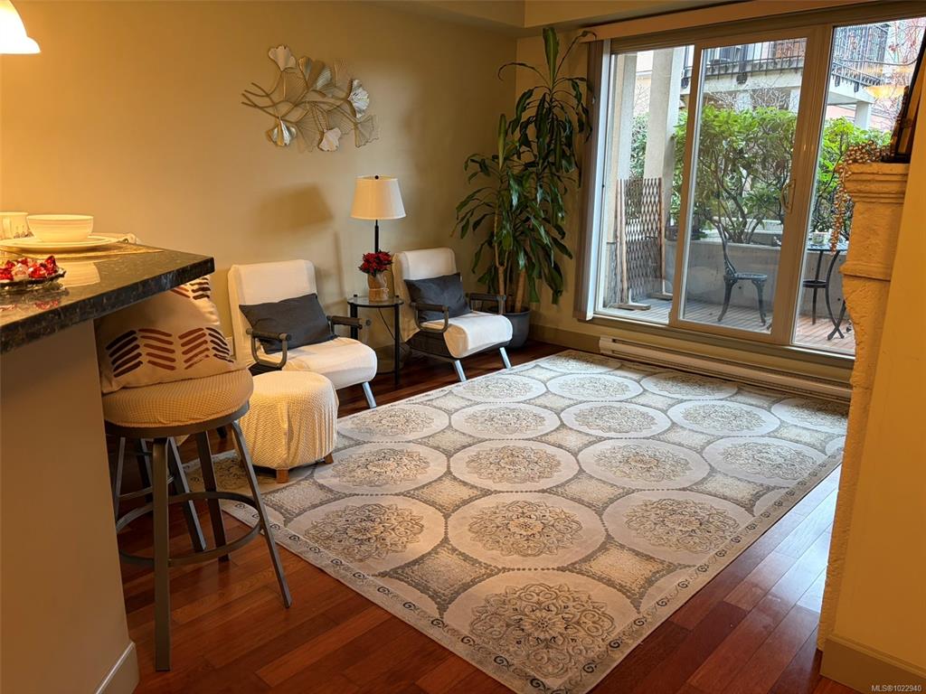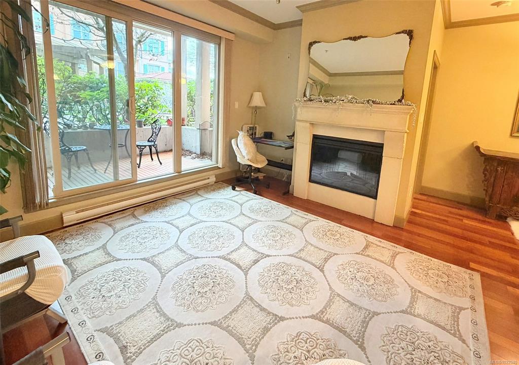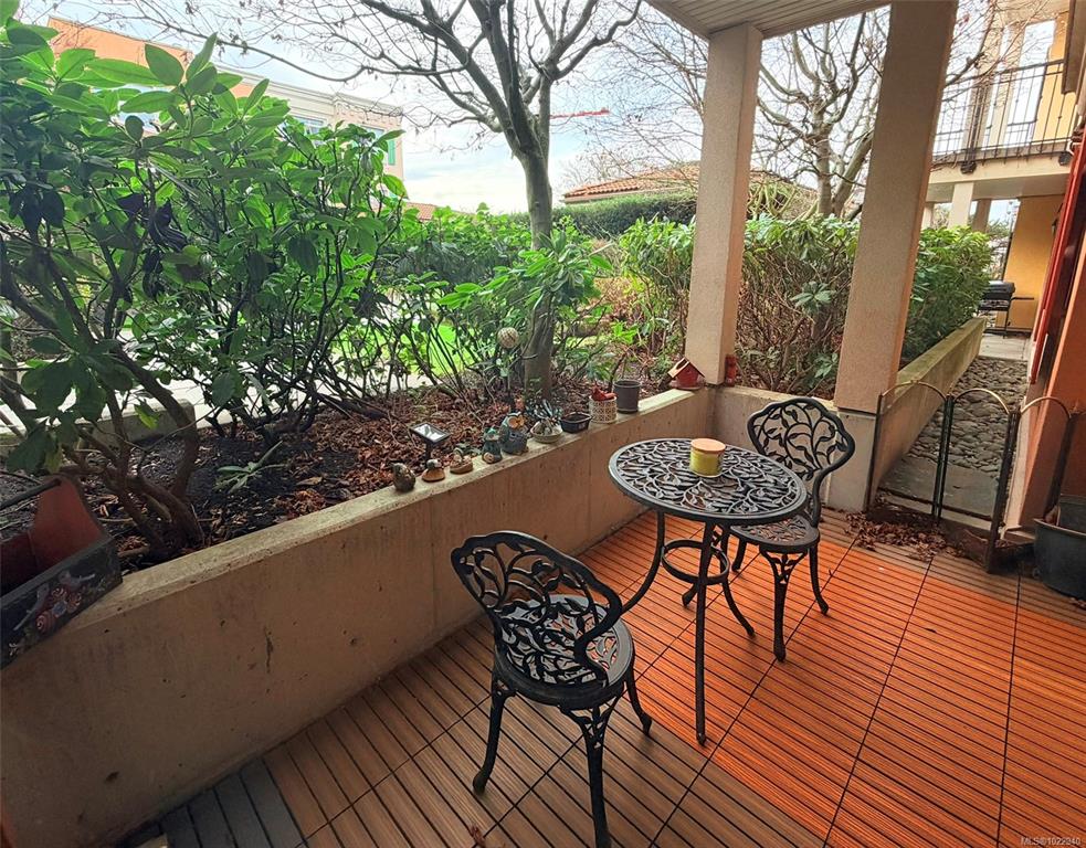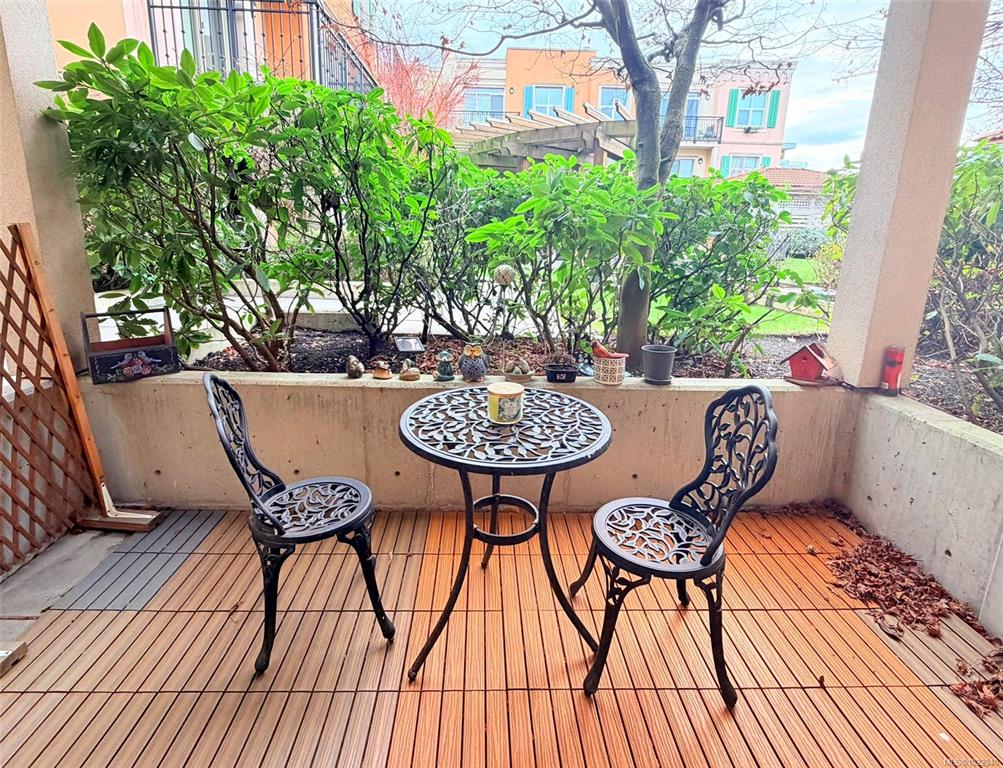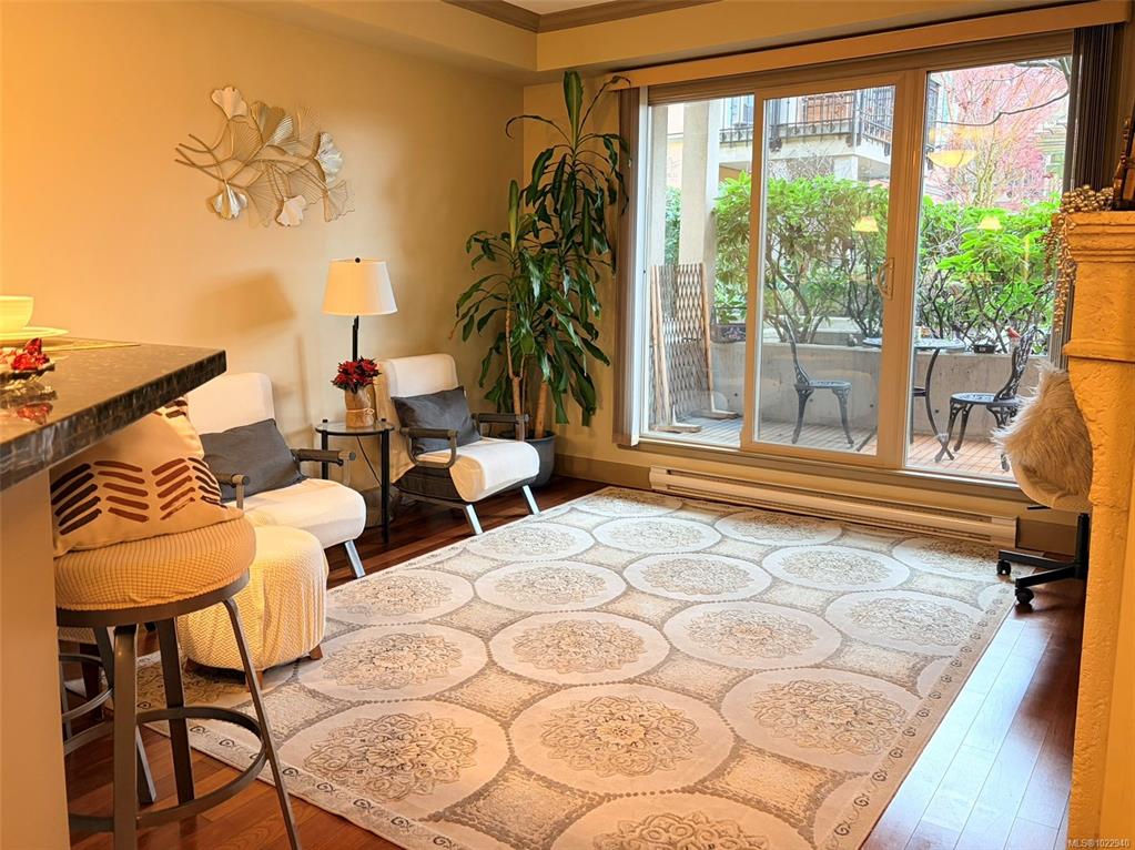 Welcome to vibrant living in Tuscany Village in Saanich East. This 1 bed 1 bath condo is located on the quiet side of the building and offers 9’ ceilings, hardwood floors, and a cozy feature fireplace. The well-appointed kitchen features solid wood cabinetry, granite countertops, and stainless steel appliances, while the bright bedroom and spacious bathroom provide everyday comfort. Step outside to a private walk-out patio that opens onto a secluded common garden—ideal for relaxing or summer BBQs. Additiona...