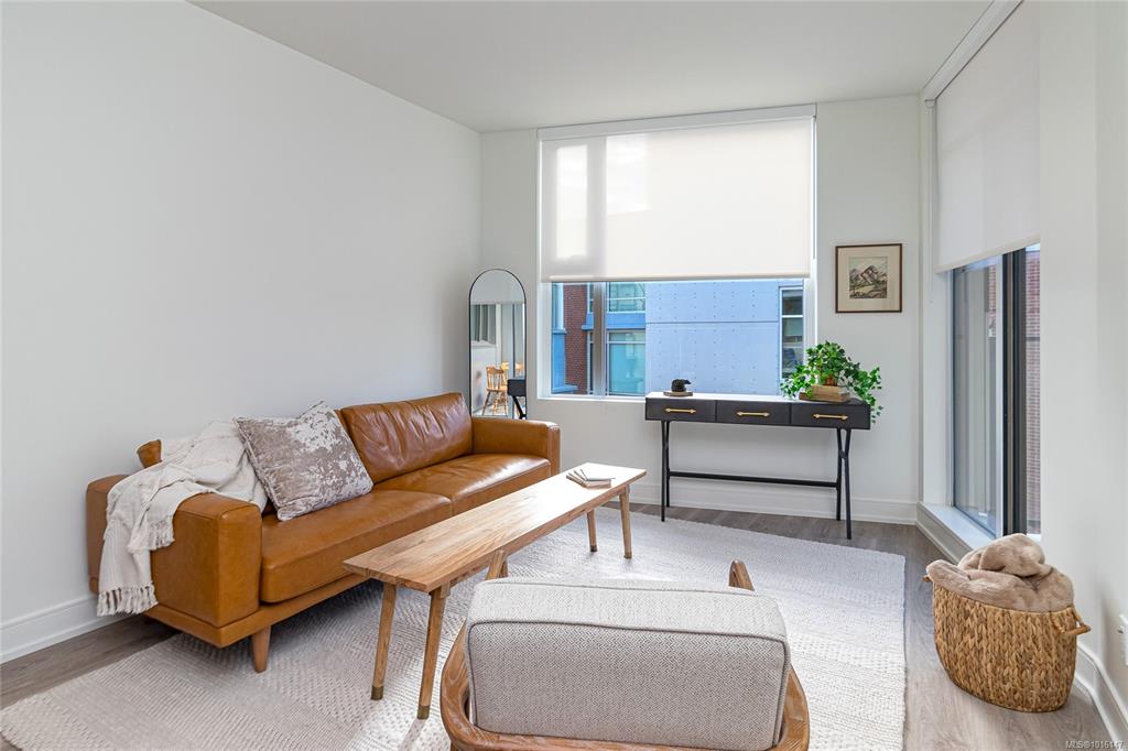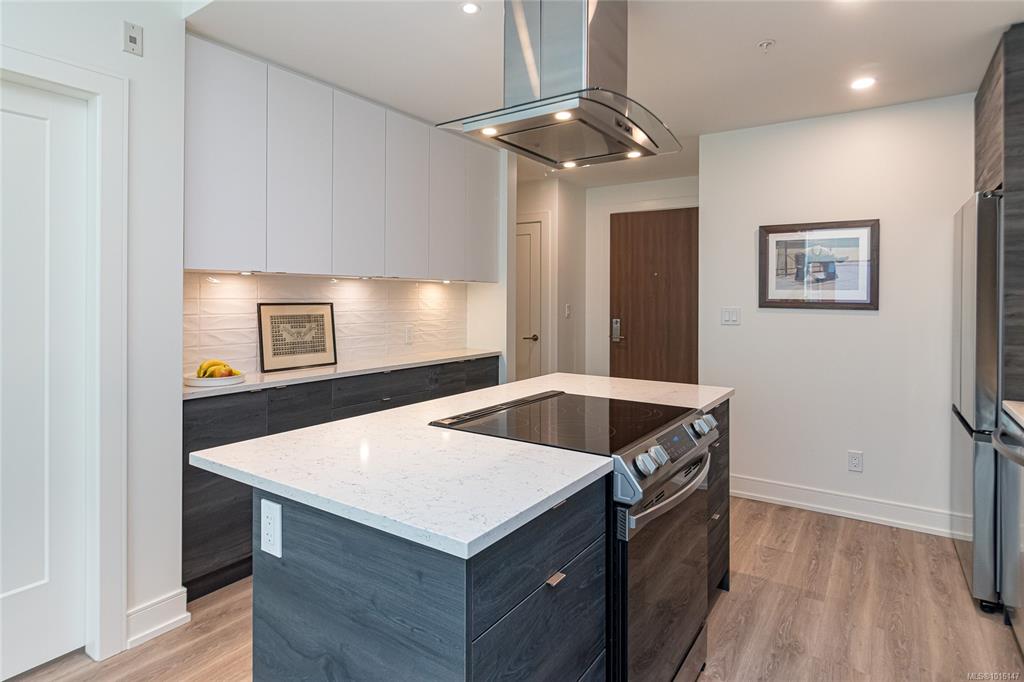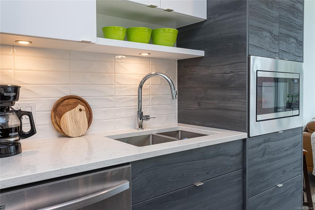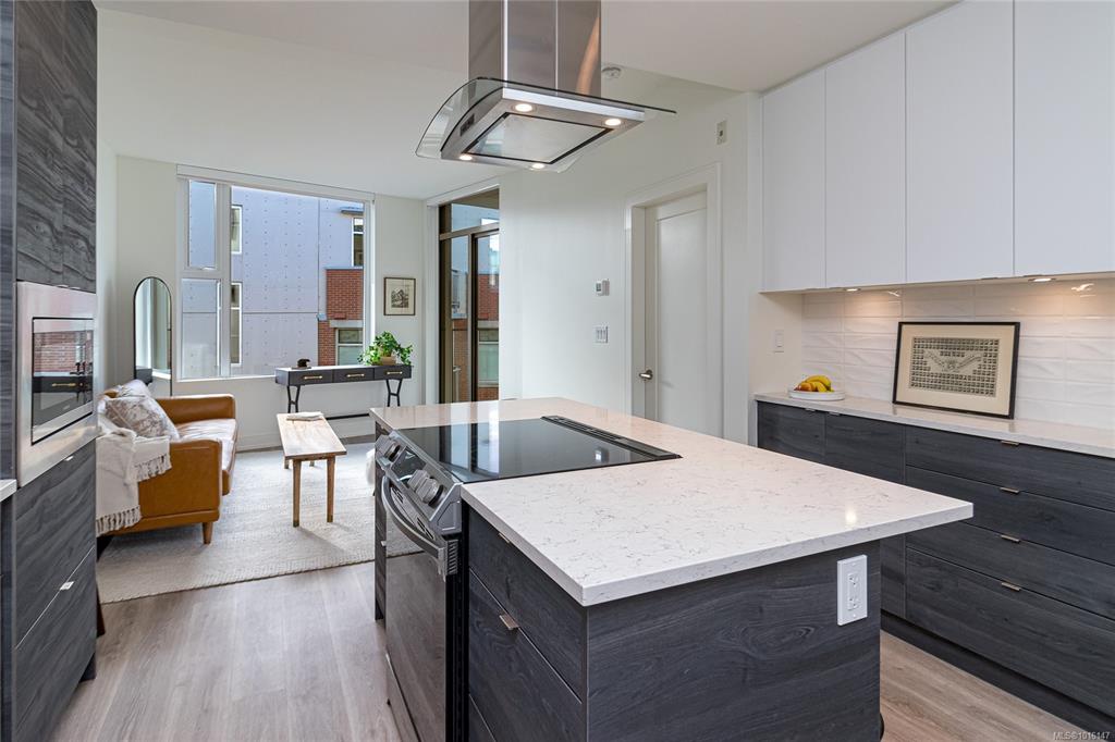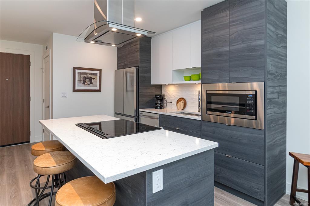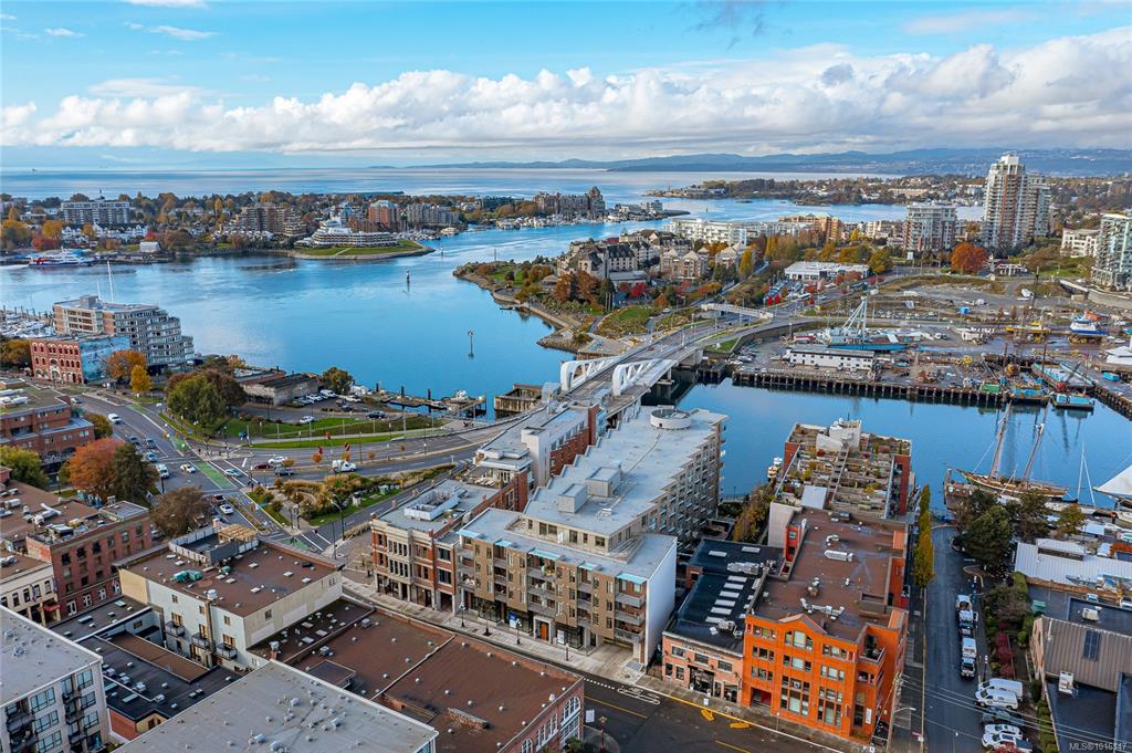 Welcome to The Pearl, your oceanfront retreat in Victoria’s historic Old Town. This stunning 1-bedroom, 1-bath home blends contemporary design with luxurious comfort in one of downtown Victoria’s most desirable waterfront communities. Enjoy an open, light-filled layout with 9’ ceilings, a sleek modern palette, & a covered balcony showcasing ocean views & the active waterways of the Inner Harbour. The inviting kitchen features elegant quartz countertops, a stylish glass tile backsplash, an oversized island p...