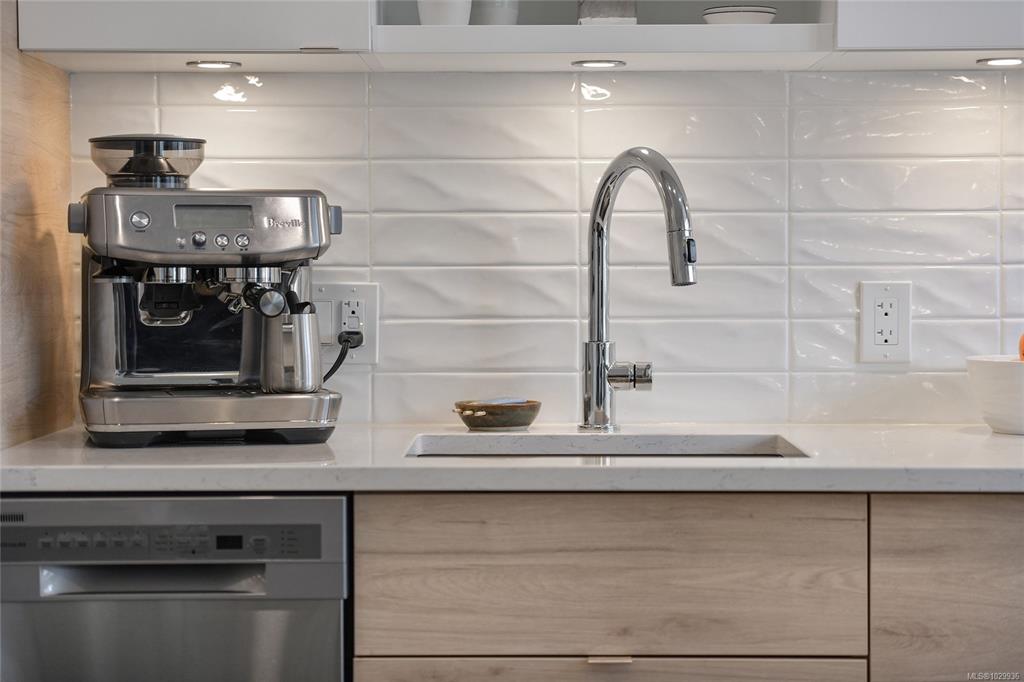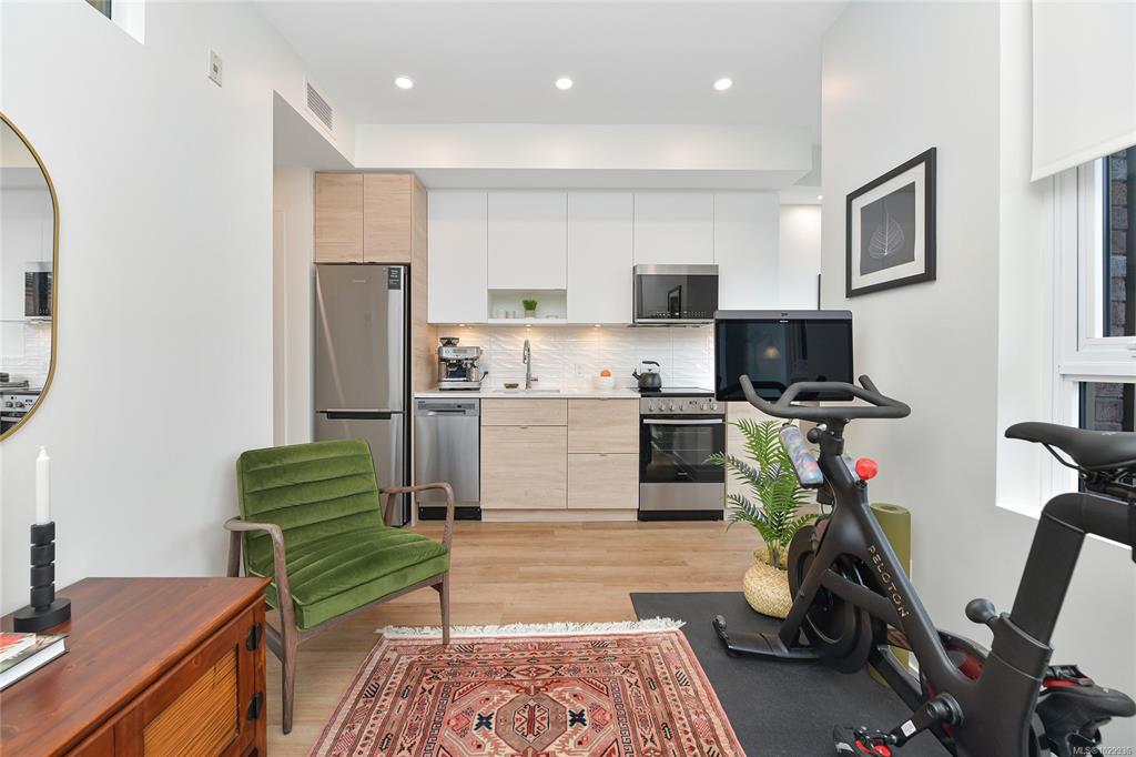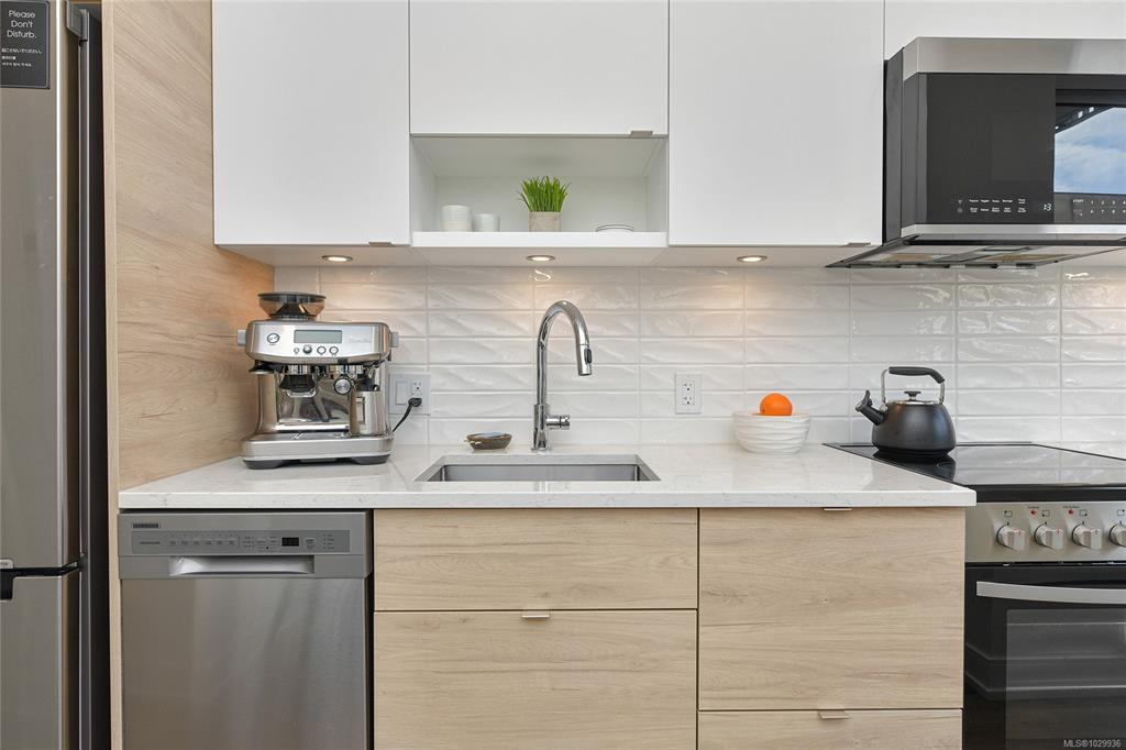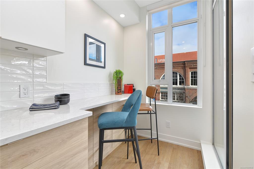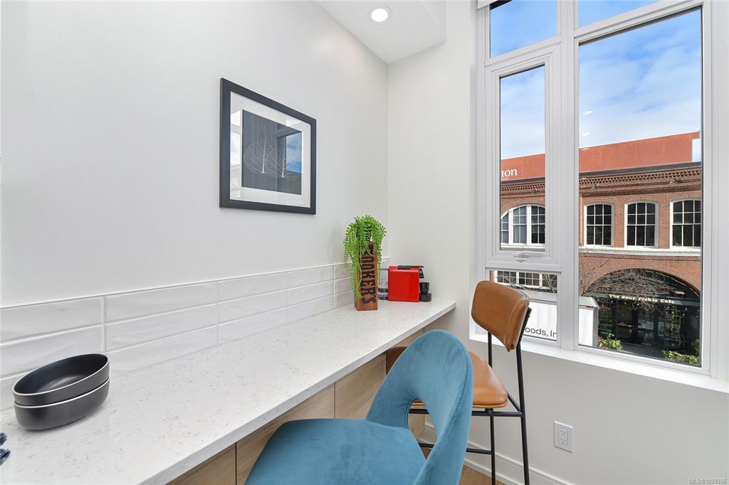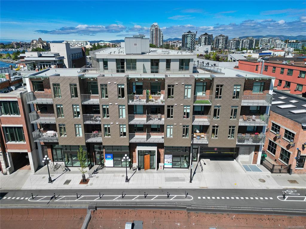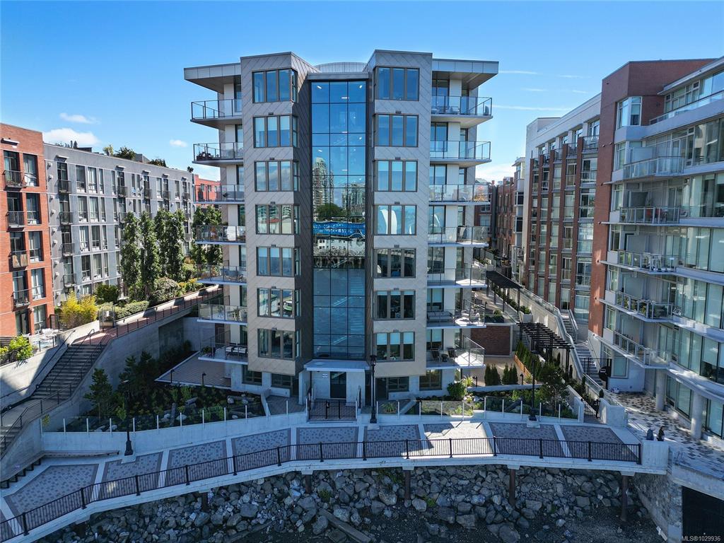 Welcome to THE PEARL Victoria’s New Waterfront residence in Old Town Victoria. 2023. Quality steel and concrete built by awarding winning team of D’Ambrosio Architects, KWI Design & Farmer Construction. An urban oasis offers exceptional quality, modern elegance & city views with brilliantly and functionally designed Junior 1 Bed, 1 Bath, 464sf and 9 ft. ceilings. Amazing natural light with SE exposures, spacious balcony with vibrant street views, exquisite finish details including custom upgraded Murphy Bed...