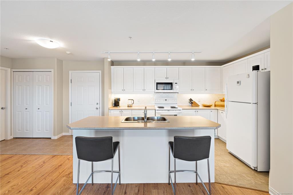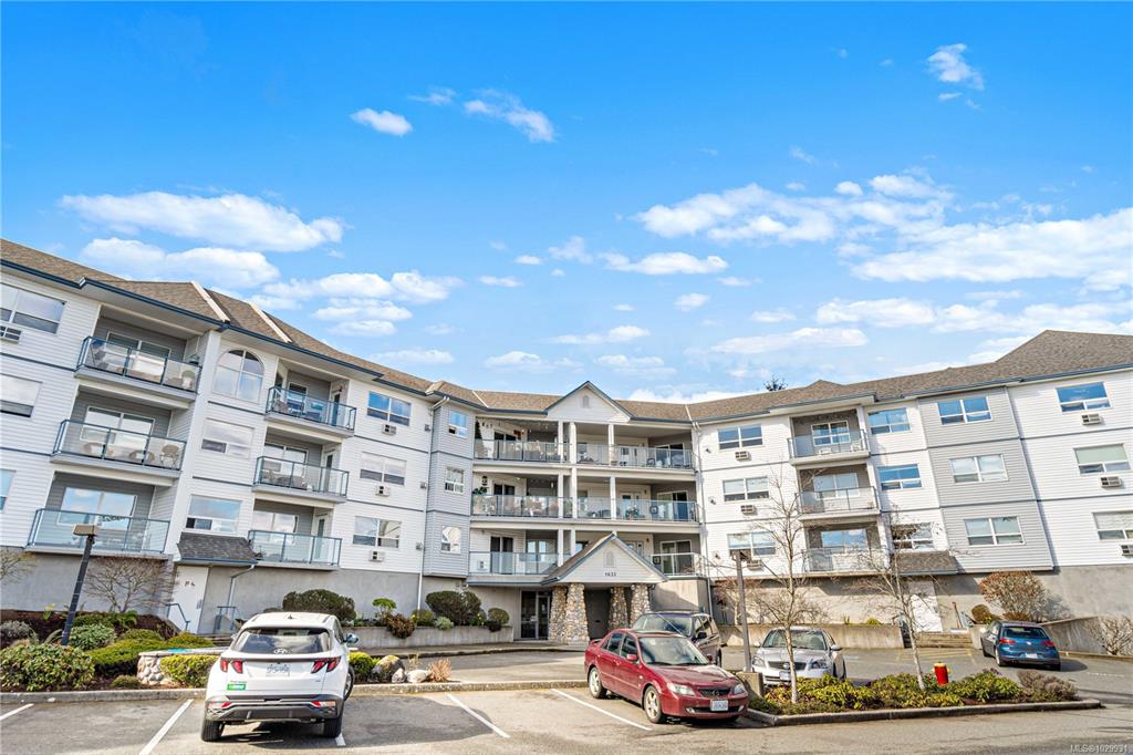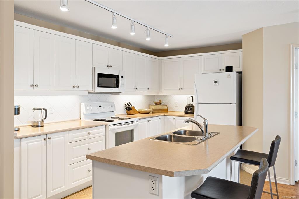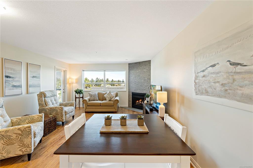 Welcome to 211-1633 Dufferin Crescent — a bright and well-maintained 2-bed, 2-bath condo in the heart of central Nanaimo. Just minutes from the hospital and everyday amenities, this home offers a functional open-concept layout with a spacious kitchen, large island, and plenty of storage. The living area is warm and inviting, complete with a cozy gas fireplace, while large windows bring in an abundance of natural light. Step out onto your private balcony to enjoy your morning coffee and peaceful outlooks, an...