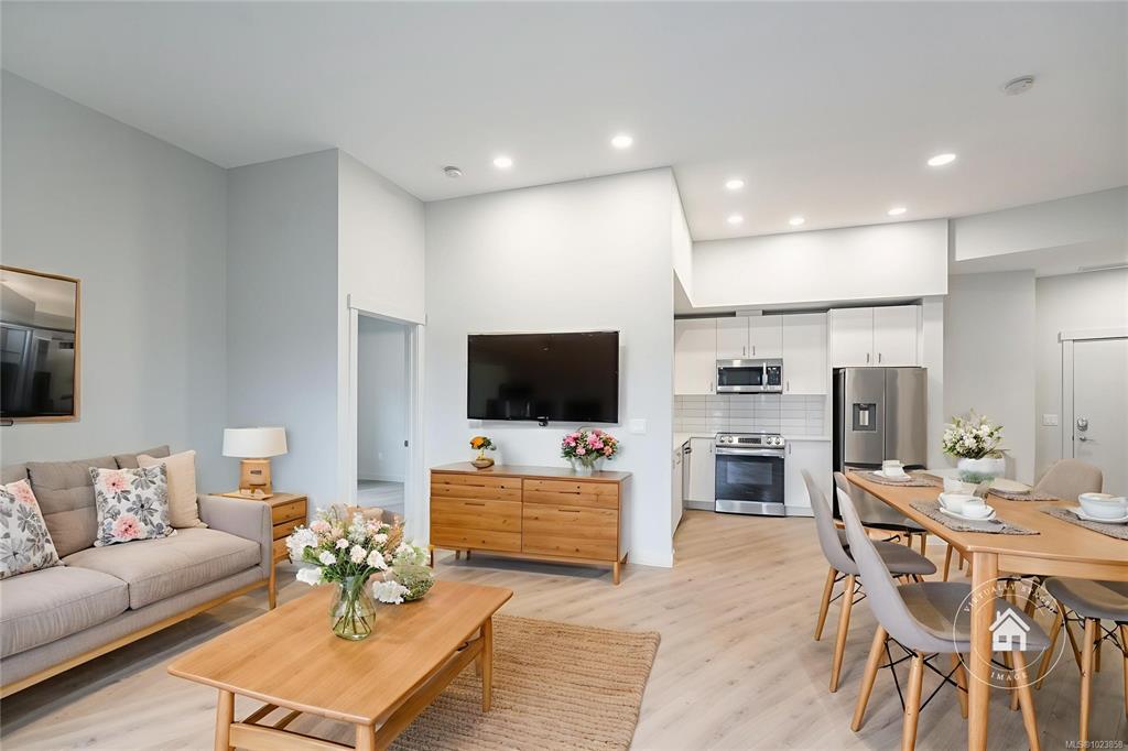Newer Construction Condominium Living at Mosaic II, completed in 2024 by premier developer Highstreet. This bright and cheerful 'Zinfandel' unit consists of 2 beds and 2 baths with an open-plan concept and private east-facing patio. Generously appointed with 10ft 8inch ceilings, Stainless Steel appliances, White Rock Quartz countertops, Luxury Vinyl Plank flooring, Chrome/Satin hardware, in-suite Laundry and a full Blinds package, your next home is move-in ready for you to bring your decorating ideas. Under...