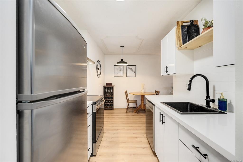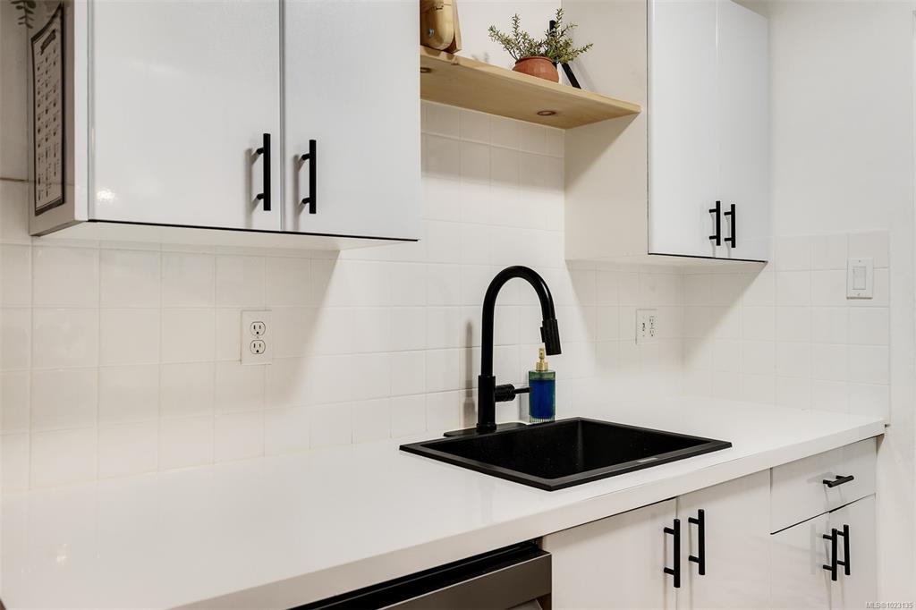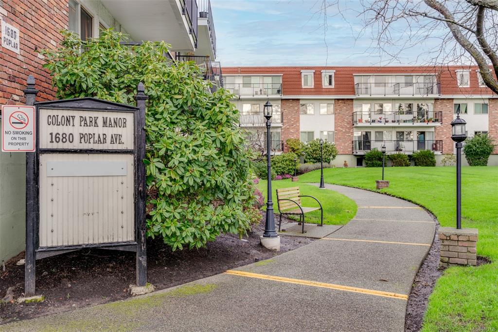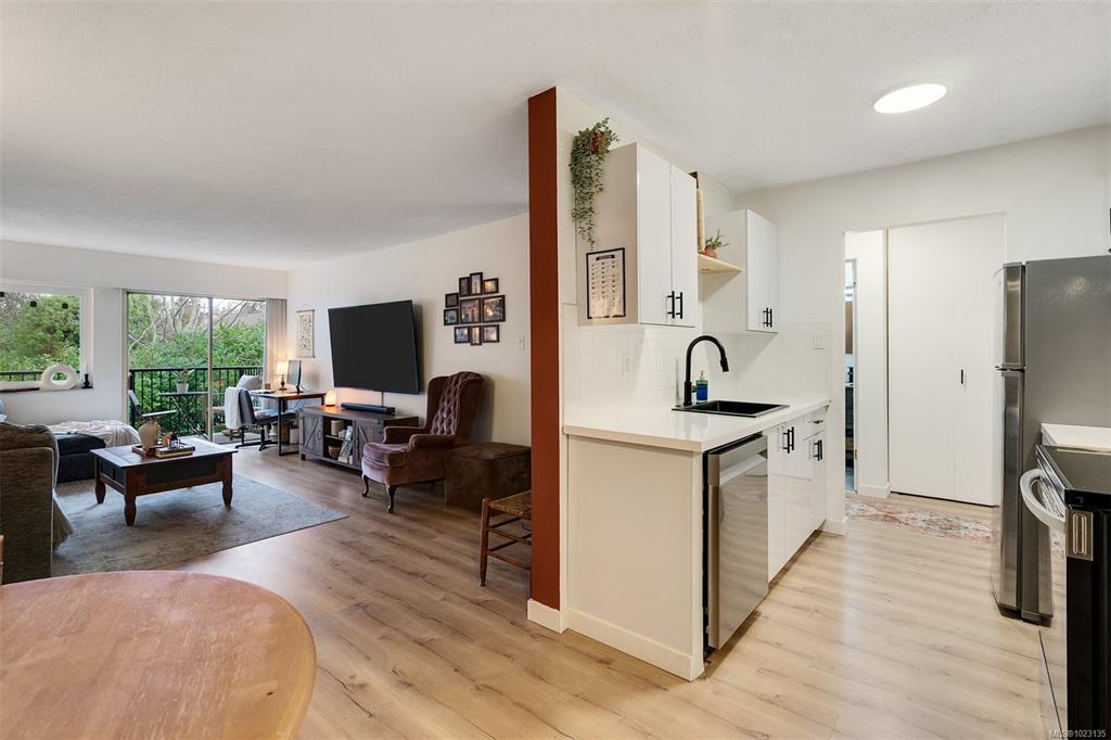 Renovated one bedroom condo at Colony Park Manor next to Mt Tolmie in Saanich! Large 740sqft floorplan features 21x13 living room for cozy movie nights plus 13x5 balcony with green outlook. Unit has been renovated with laminate floors, updated kitchen with new cabinets, countertops, appliances and backsplash, vinyl windows, bathroom with tile floors and new vanity. Nothing to do but move in and enjoy! Large 5x4 in-unit storage room plus separate storage locker for all belongings, bike storage and parking st...