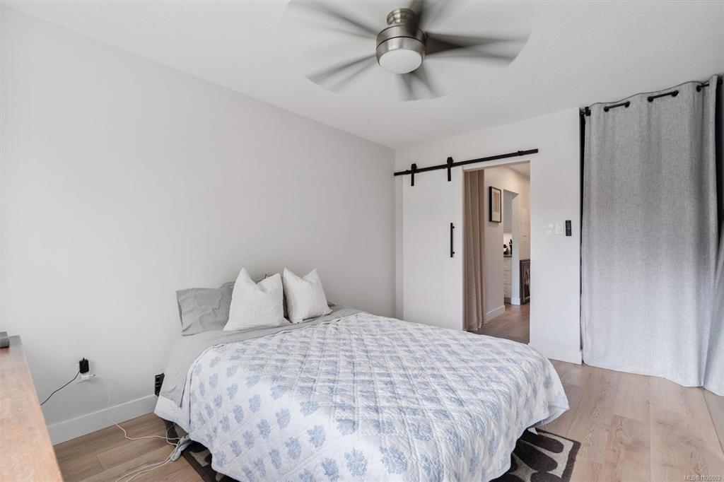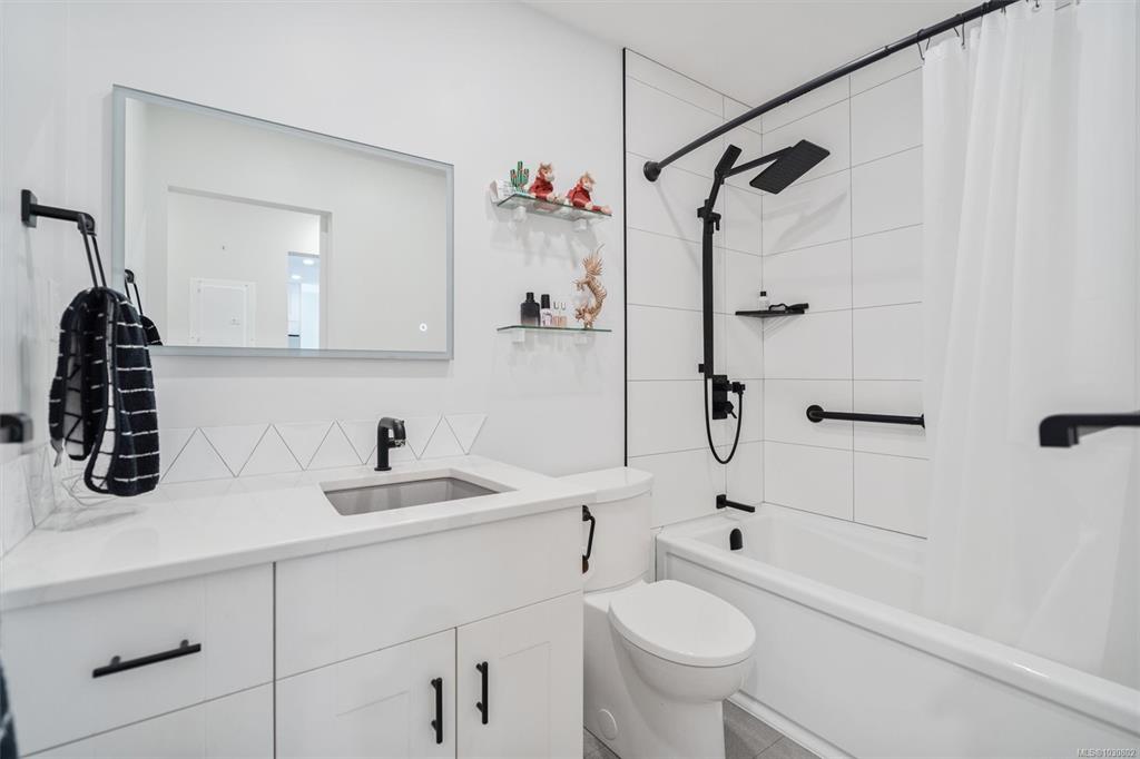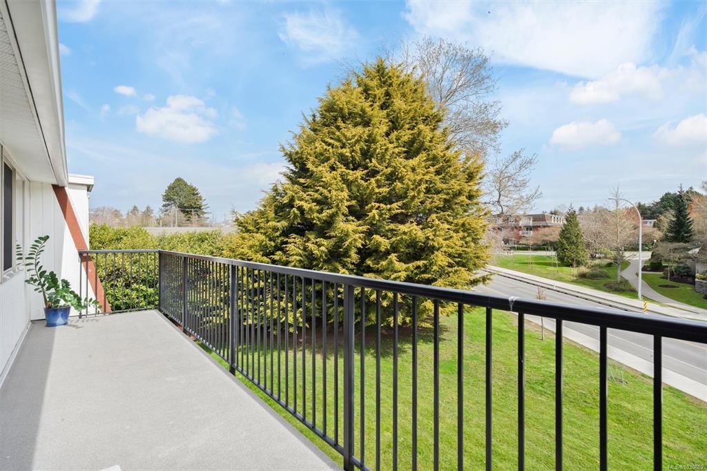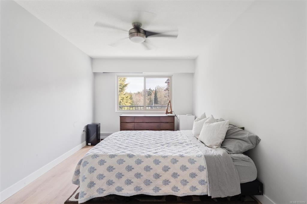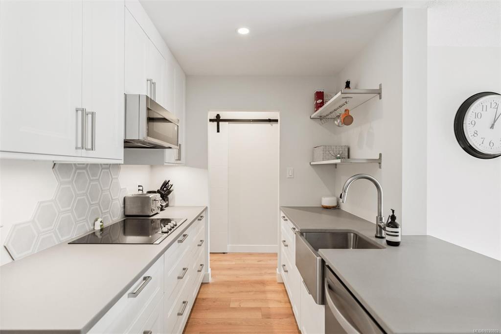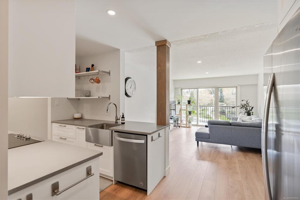 Top floor, beautifully renovated condo near the University! Gorgeous updates throughout including like new laminate floors, kitchen cabinetry, tile backsplash, whirlpool stainless steel appliances and a Frigidaire induction stove. Updated 4 piece bathroom features a tile tub with a rainfall shower-head. In unit washing machine. Modern and neutral finishings with chic barn doors elevate this 1-bed 1-bath unit. Spacious sun drenched private deck off the bright living room with views of Mount Tolmie. The build...