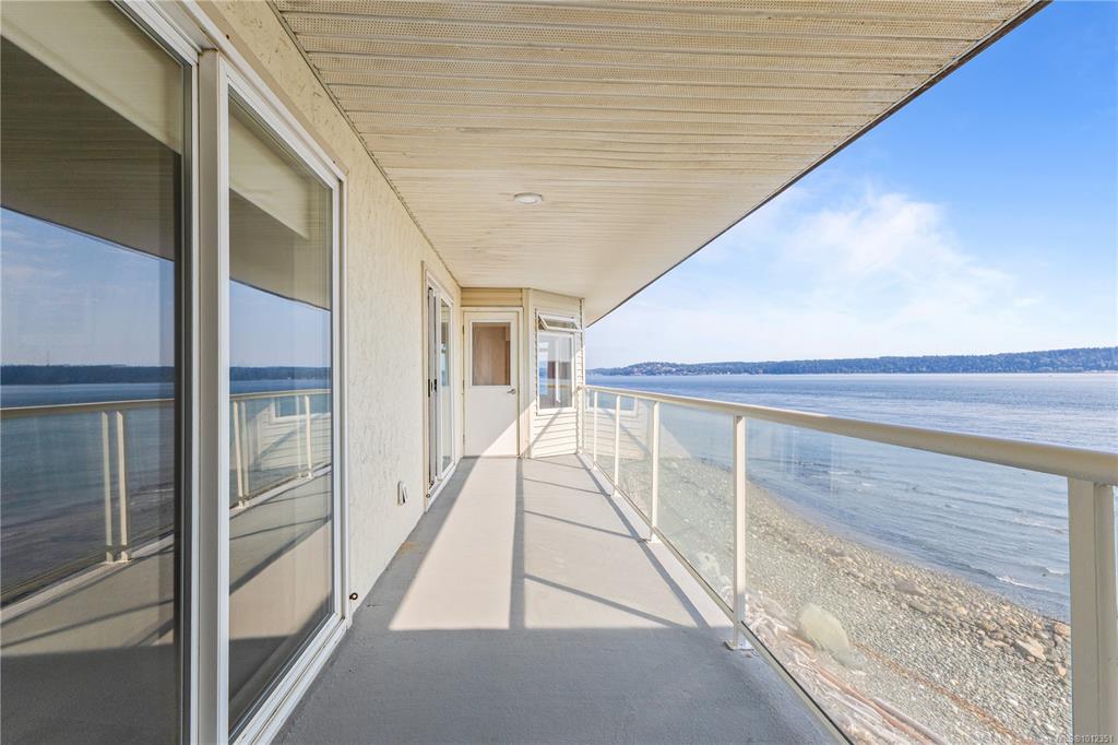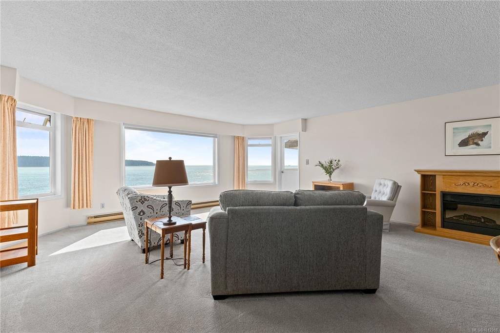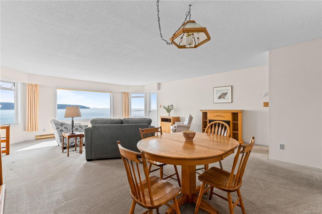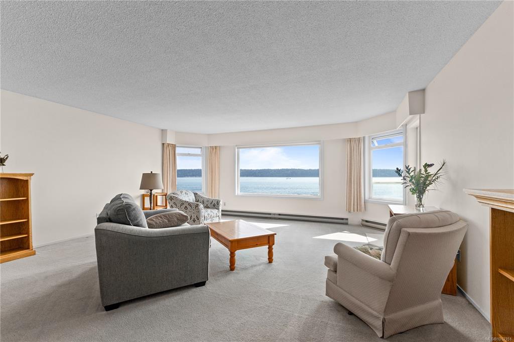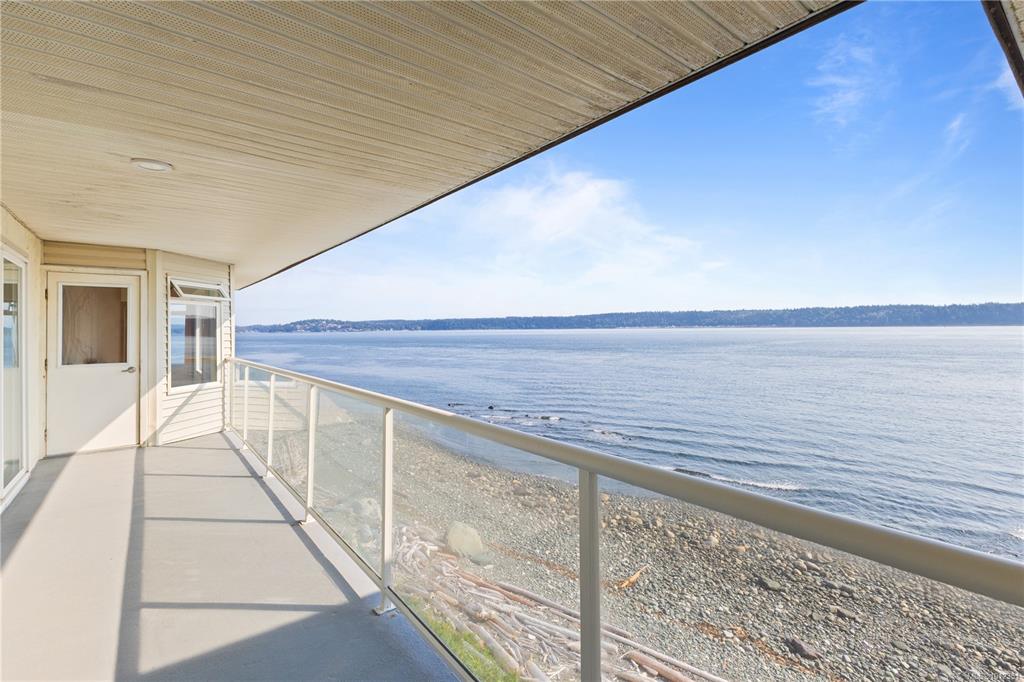 Discover top-floor oceanfront living at Ocean Shores! This bright condo offers breathtaking views of Discovery Passage, where you can watch sunrises, passing marine life, and coastal scenery right from your windows. The spacious layout features a functional kitchen, large living area, and sliding doors from both bedrooms leading to the expansive balcony. The primary suite includes a walk-in closet and full ensuite with tub and shower, while a second bathroom with shower is conveniently located near the gues...