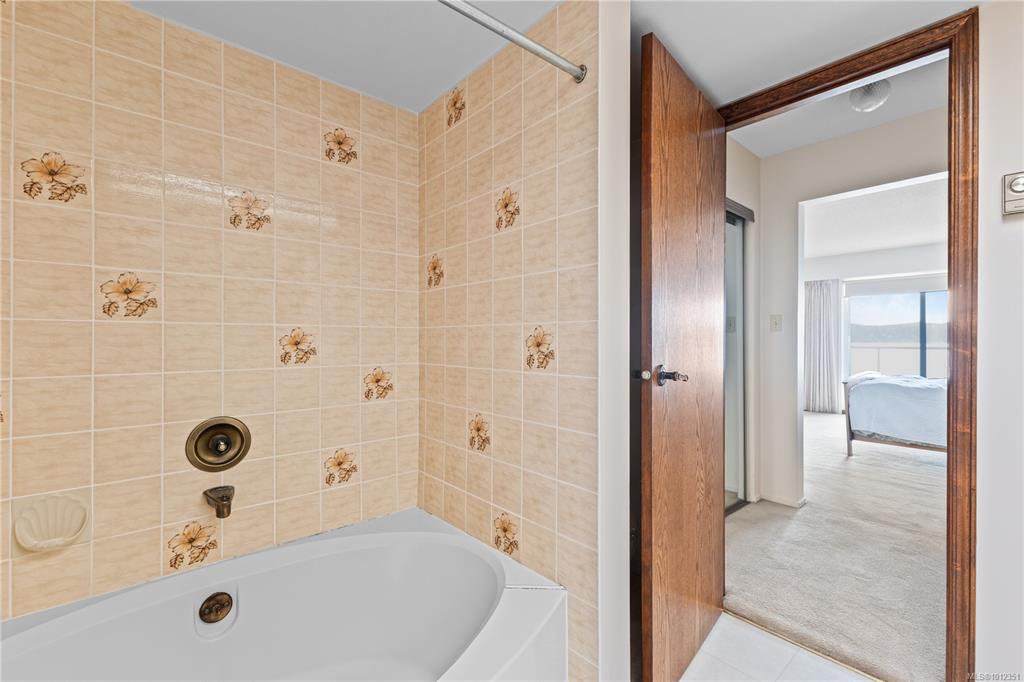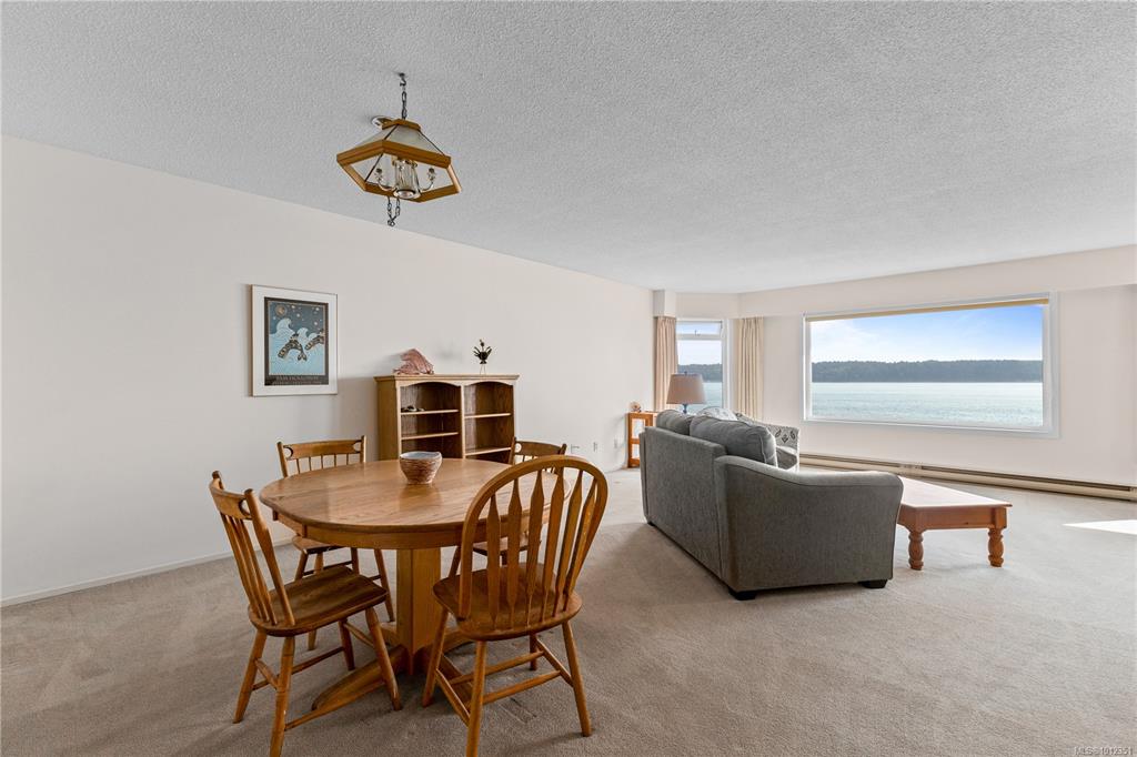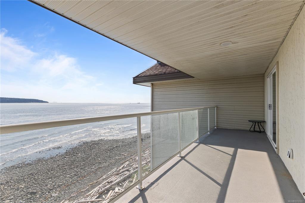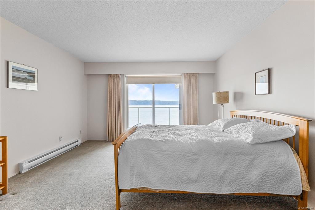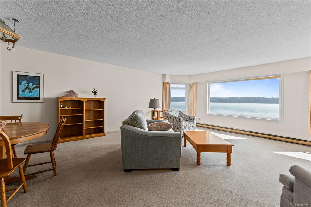 Discover top-floor oceanfront living at Ocean Shores! This bright condo offers breathtaking views of Discovery Passage, where you can watch sunrises, passing marine life, and coastal scenery right from your windows. The spacious layout features a functional kitchen, large living area, and sliding doors from both bedrooms leading to the expansive balcony. The primary suite includes a walk-in closet and full ensuite with tub and shower, while a second bathroom with shower is conveniently located near the gues...