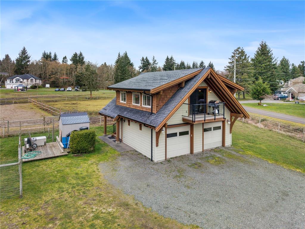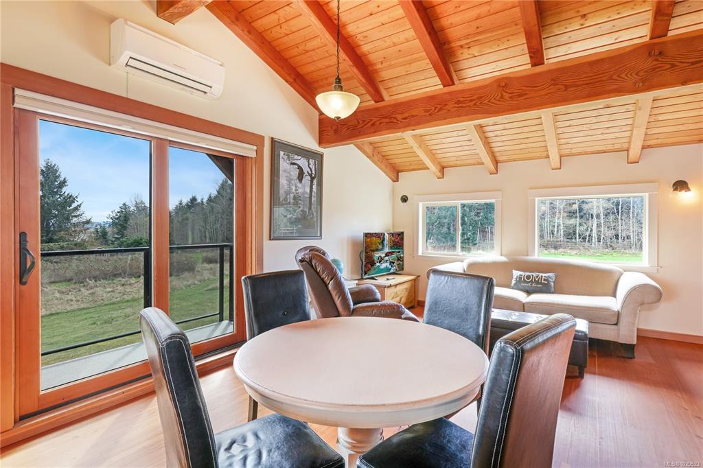 On a peaceful and inviting 1.36ac of pristine land, in a quiet cul-de-sac in the Seal Bay area, sits a 647 sq ft suite over a 2-car garage. This home has wonderful finishes with hardwood and tile throughout, prominent exposed wood beams, wood trim and a east facing balcony overlooking the parcel and all the flora and fauna that thrives on Vancouver Island. There are multiple windows to provide a natural lighting. The open suite has a partioned 4-pce bathroom. The garage has the washer and dryer. Exterior fe...