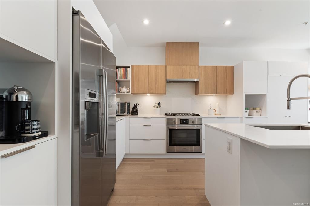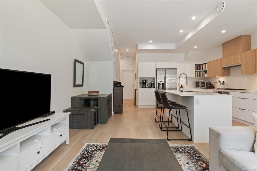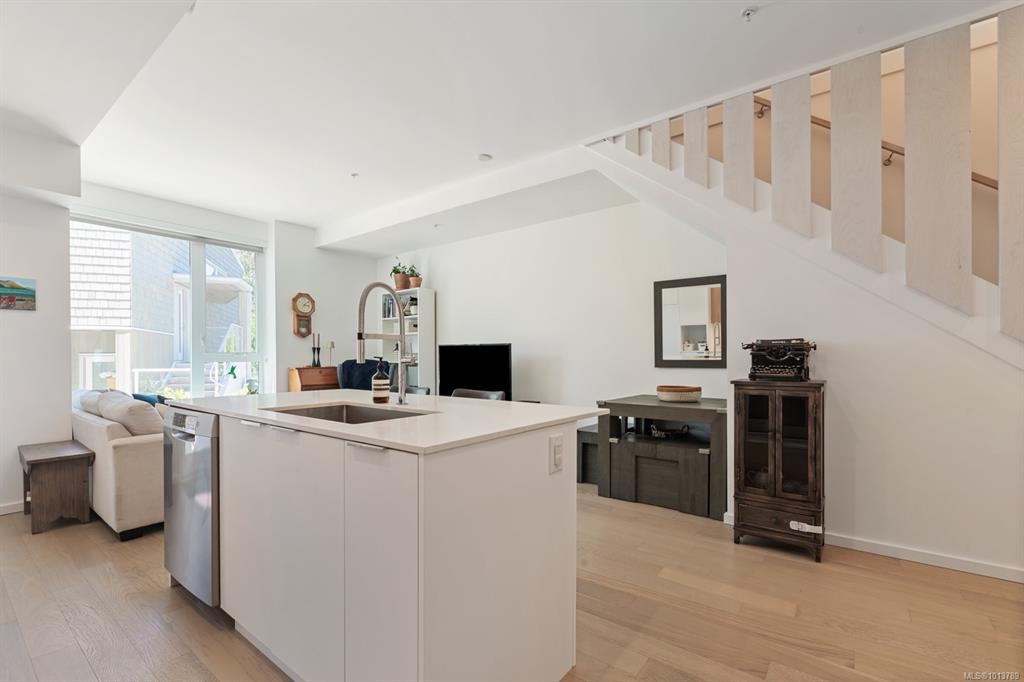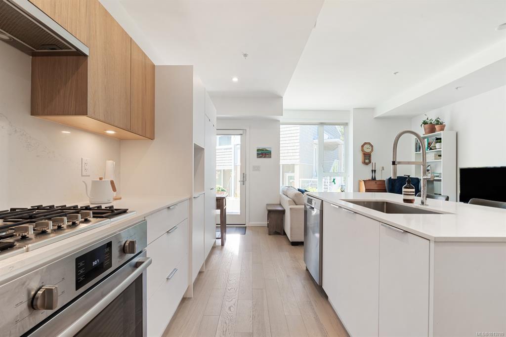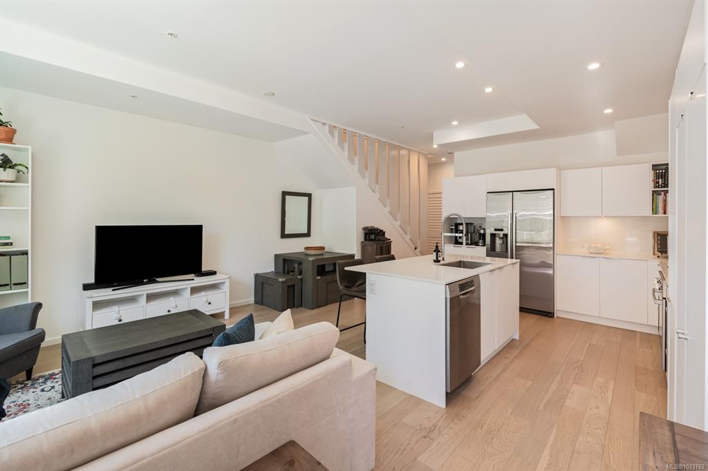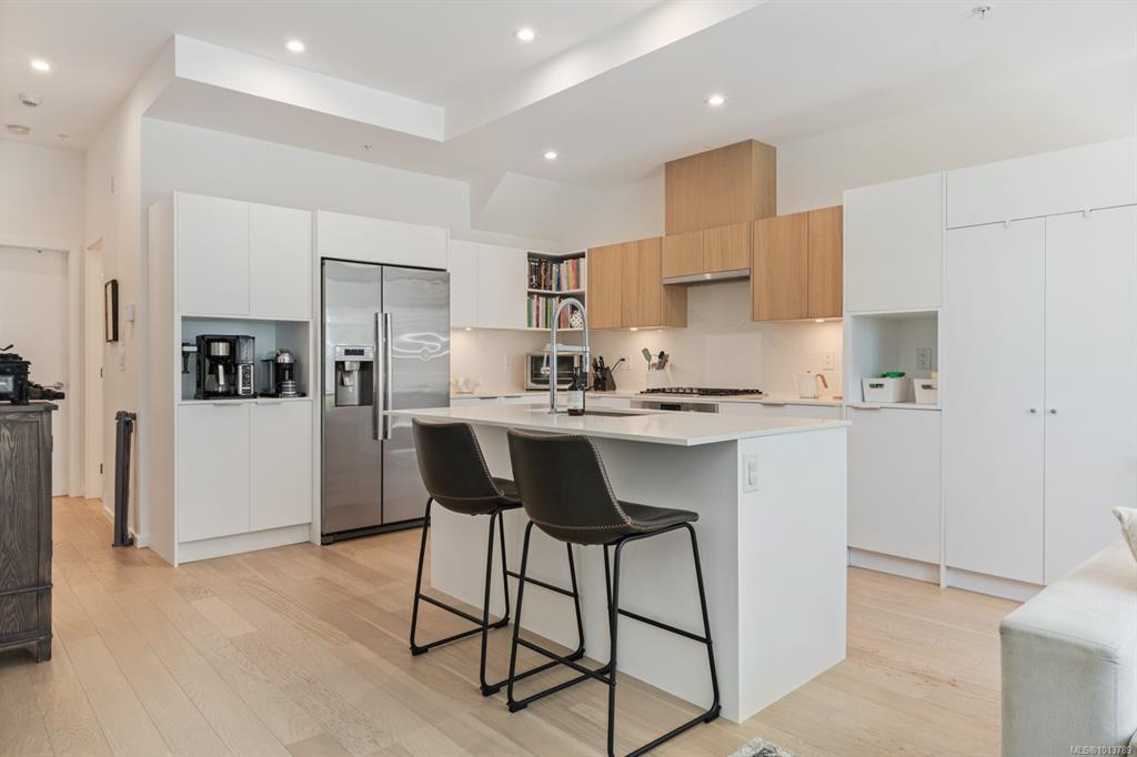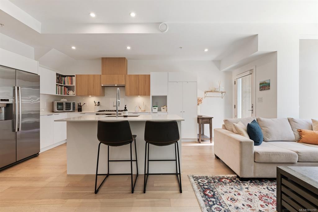 Experience refined living in Fairfield, one of Victoria’s most coveted and walkable neighbourhoods. This 2 bed, 2 bath townhome at Rhodo by Aryze offers 985ft² of intelligently designed living across two levels, plus a 183ft² private patio. The main floor features an open-concept kitchen with Bosch appliances, gas cooktop, quartz countertops, and custom cabinetry, alongside a full bedroom, 3-piece bath, and in-unit laundry. Upstairs, the spacious primary bedroom includes built-in storage and a 4-piece ensui...