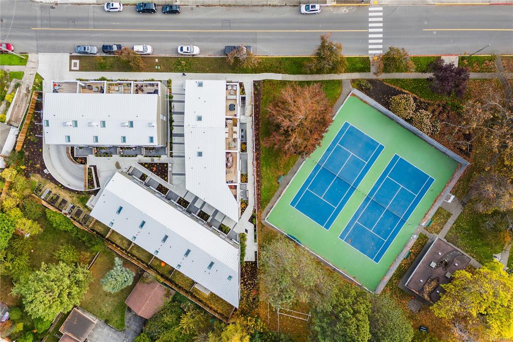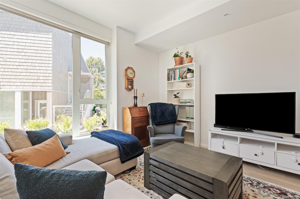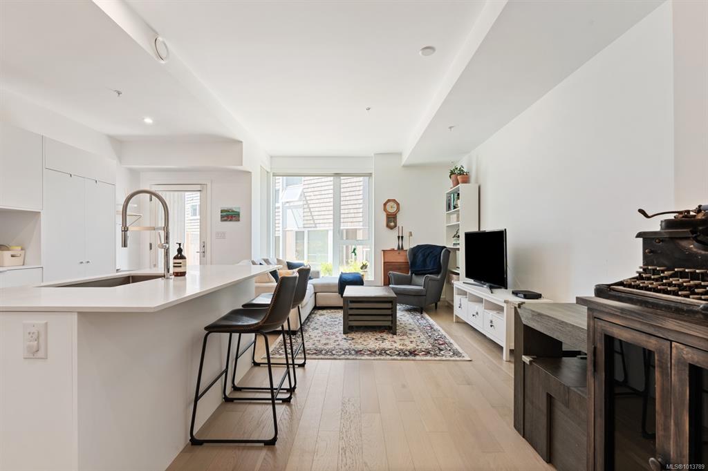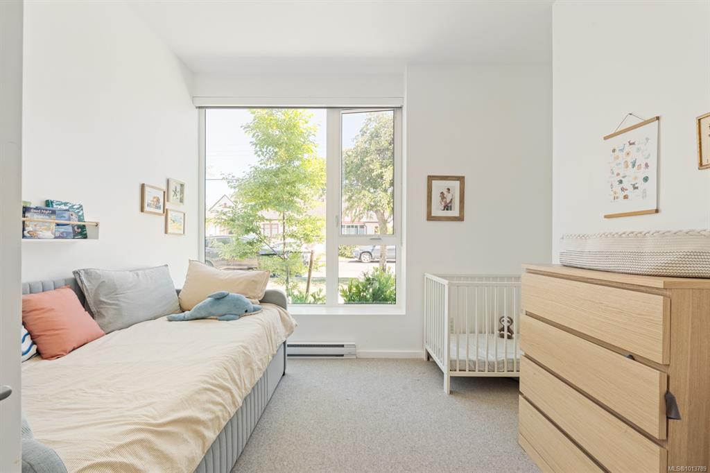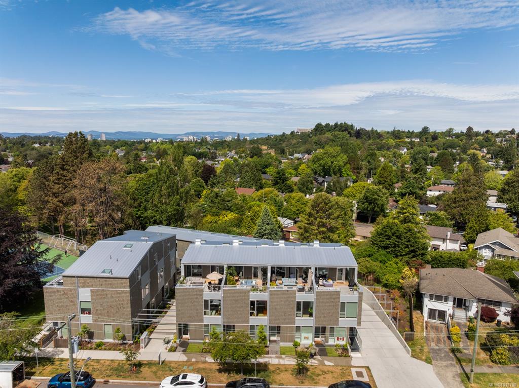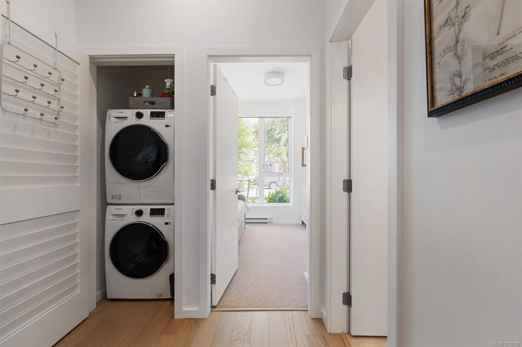 Experience refined living in Fairfield, one of Victoria’s most coveted and walkable neighbourhoods. This 2 bed, 2 bath townhome at Rhodo by Aryze offers 985ft² of intelligently designed living across two levels, plus a 183ft² private patio. The main floor features an open-concept kitchen with Bosch appliances, gas cooktop, quartz countertops, and custom cabinetry, alongside a full bedroom, 3-piece bath, and in-unit laundry. Upstairs, the spacious primary bedroom includes built-in storage and a 4-piece ensui...
