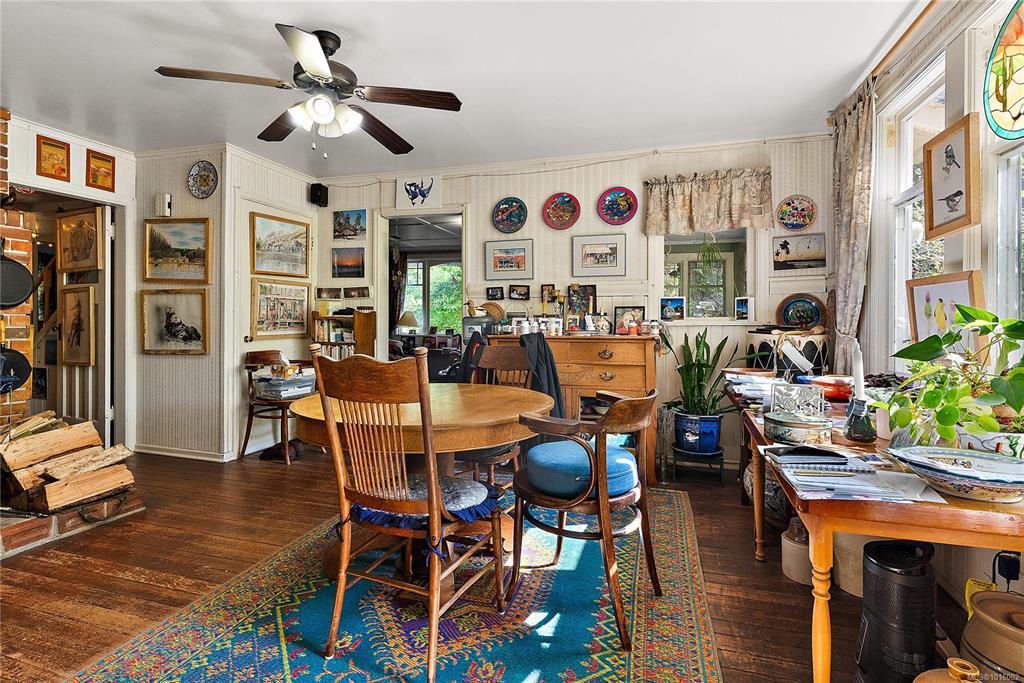 Tucked away on a quiet, sunny, and secluded .99-acre corner lot with lots of access, this charming North Saanich character farmhouse offers a rare blend of privacy, charm, & convenience. Surrounded by mature landscaping, fruit trees, berry bushes, & garden plots, it’s a nature lover’s dream. Inside, the 4-bedroom home boasts timeless features including hardwood floors, coved ceilings, & a cozy wood stove. Primary & one additional bedroom on the main floor with an additional two bedrooms upstairs. Downstairs...
